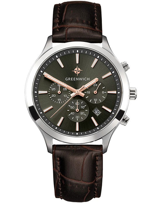 Мужские наручные часы Greenwich GW 043.12.34 представляют собой классический вариант для повседневной носки. Циферблат украшается брендовым логотипом, изображающим Розу Ветров. Эмблема мореплавательского духа символизирует удачу, стремление достигнуть поставленной цели. Часы характеризуются традиционными формами, лаконичным исполнением, что делает модель элегантным дополнением к деловому костюму. Надёжный корпус из нержавеющей стали спасает японский механизм от повреждений и ударов. Минеральное стекло отличается устойчивостью к образованию царапин на поверхности.