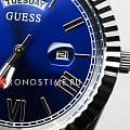 Мужские наручные часы в стиле fashion Guess GW0265G7 с минеральным стекломМинеральное стеклоМинеральное стекло представляет собой искусственно выращенный минерал кварца. Такое стекло отличается особой устойчивостью к повреждениям и царапинам. Уступает по некоторым качествам сапфировому стеклу., кварцевый механизм с высокой точностью. Класс водозащиты: 50 метров, позволит защитить корпус от случайных брызг или капель дождя. Корпус часов изготовлен из стали. Циферблат выполнен по технологии Sunray (солнечные лучи). Метки в виде штрихов и римских цифр. Окошко даты с увеличительным стеклом. День недели отображается в положении 12 часов. Браслет с раскладной застёжкойРаскладная застёжкаТакой тип застёжки используется только на браслетах из металла. Она никогда не раскрывается полностью, происходит разделение на 2 и более частей. Раскладывающая застёжка снизит вероятность потери часов к минимуму.