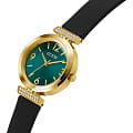 Женские наручные часы Guess GW0912L4 — это элегантность и стиль, воплощенные в современном дизайне. Часы оснащены надежным кварцевым механизмом, обеспечивающим точность и долговечность. Круглый корпус из стали с золотистым IP-покрытиемIP-покрытиеМетод ионного напыления. Демонстрирует повышенную устойчивость к истиранию, окислению и химическим веществам. Под воздействием высокого давления и температуры около 1500°C молекулы металла надёжно соединяются с частицами корпуса часов. и полированной поверхностью украшен кристаллами, что придает модели особый блеск и утонченность. Зеленый циферблат с гильошированным узором в центральной части создает эффектный визуальный акцент. Метки в виде штрихов и арабских цифр обеспечивают легкость восприятия времени. Рифленая заводная головка добавляет изысканности и подчеркивает внимание к деталям. Силиконовый ремешок с классической застежкой обеспечивает комфортное ношение и надежную фиксацию на запястье. Минеральное стеклоМинеральное стеклоМинеральное стекло представляет собой искусственно выращенный минерал кварца. Такое стекло отличается особой устойчивостью к повреждениям и царапинам. Уступает по некоторым качествам сапфировому стеклу. защищает циферблат от царапин и повреждений, а водозащита 30WR предохраняет часы от случайных брызг и дождя. Эта модель станет прекрасным дополнением к вашему образу, сочетая в себе функциональность и изящество.