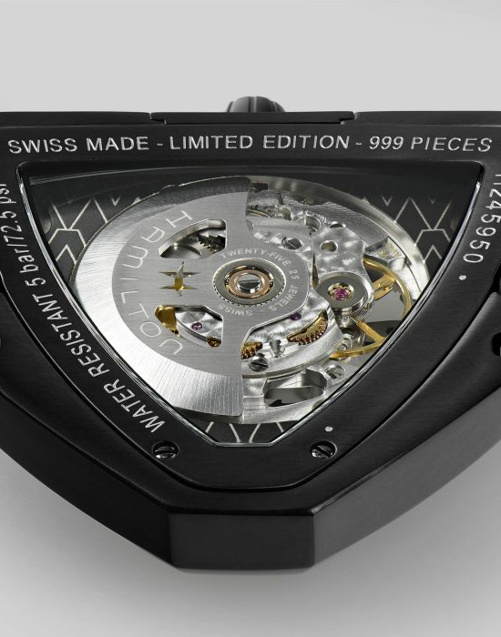 Мужские механические швейцарские часы из лимитированной серии в 999 экземпляров Hamilton Ventura Skeleton Auto H24595331, механический механизм (автоматический калибр) с высокой точностью. Сапфировое стекло устойчивое к появлению царапин, обладающее высокой прозрачностью. Класс водозащиты: 50 метров, позволит защитить корпус от случайных брызг или капель дождя. Корпус часов изготовлен из стали, цвета.