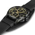 Механизм с автоматическим подзаводом Сапфировое стеклоСапфировое стеклоПрочный и надёжный материал из кристалла сапфира синтетического происхождения, характеризующийся особой твёрдостью и устойчивостью к царапинам и повреждениям. устойчивое к появлению царапин, обладающее высокой прозрачностью. Класс водозащиты: 100 метров, позволит плавать, нырять и заниматься другими водными видами спорта. Корпус часов изготовлен из стали с PVD-покрытиемPVDУльтратонкое покрытие наносится в технике вакуумного напыления, сочетает в себе нитрид титана особой прочности со слоем золота или оксида хрома. Несёт в себе декоративную или защитную функцию.. Кожаный ремешок с классической застежкой.