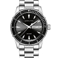 Мужские швейцарские часы Hamilton Jazzmaster Seaview Day Date Quartz H37511131, кварцевый механизм с высокой точностью. Сапфировое стеклоСапфировое стеклоПрочный и надёжный материал из кристалла сапфира синтетического происхождения, характеризующийся особой твёрдостью и устойчивостью к царапинам и повреждениям. устойчивое к появлению царапин, обладающее высокой прозрачностью. Класс водозащиты: 100 метров, позволит плавать, нырять и заниматься другими водными видами спорта. Корпус часов изготовлен из стали. Стрелки и метки с люминесцентным покрытиемЛюминесцентное покрытиеПозволяет считывать показания времени в темноте. Производители наносят на стрелки, часовые индексы, безель или поверхность циферблата светонакопительный состав, дающий холодное свечение.. Стальной браслет на застёжке-бабочке с кнопкамиЗастёжка "бабочка"Такой вид застёжки дополняется предохранителями, помогающими избежать случайного раскрытия браслета. Обладают изящным исполнением. .
