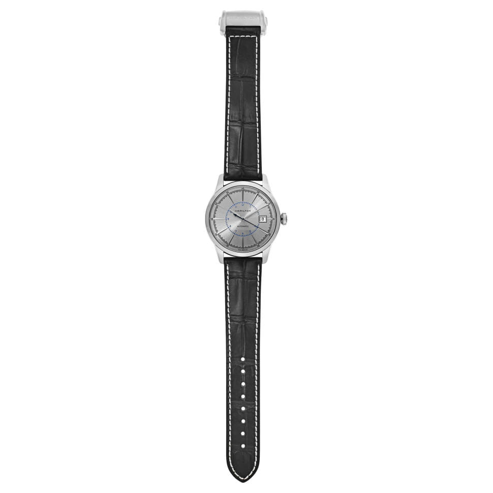 Компания Hamilton никогда не недооценивает мощь классических часов с тремя стрелками, которые опираются на наше наследие, фирменный стиль и американский дух. От старых железных дорог до современных наручных часов автоматический механизм H-10 с 80-часовым запасом хода и динамичным дизайном циферблата, напоминающим колеса ранних паровозов, созданы друг для друга. Механический механизм (автоматический калибр) с высокой точностью. Сапфировое стеклоСапфировое стеклоПрочный и надёжный материал из кристалла сапфира синтетического происхождения, характеризующийся особой твёрдостью и устойчивостью к царапинам и повреждениям. устойчивое к появлению царапин, обладающее высокой прозрачностью. Класс водозащиты: 50 метров, позволит защитить корпус от случайных брызг или капель дождя. Корпус часов изготовлен из нержавеющей стали. Кожаный ремешок с раскладной застёжкойРаскладная застёжкаТакой тип застёжки используется только на браслетах из металла. Она никогда не раскрывается полностью, происходит разделение на 2 и более частей. Раскладывающая застёжка снизит вероятность потери часов к минимуму..