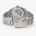 Hamilton Khaki Field Quartz H69401131 — компактные и универсальные часы в классическом военном стиле, с акцентом на надёжность и практичность. Корпус диаметром 38 мм выполнен из нержавеющей стали с сатинированной поверхностью. Он лёгкий, удобный и идеально подходит для запястий любого размера. Циферблат защищён сапфировым стекломСапфировое стеклоПрочный и надёжный материал из кристалла сапфира синтетического происхождения, характеризующийся особой твёрдостью и устойчивостью к царапинам и повреждениям. с антибликовым покрытиемАнтибликовое покрытиеСлой оксида металла в 0,13-0,3 микрон, благодаря которому стекло часов не бликует и не отражает свет. Антибликовое покрытие уменьшает отражение света в 10 раз, обеспечивая отличную читаемость показателей циферблата., устойчивым к царапинам и бликам. Циферблат оформлен в классическом армейском стиле: крупные арабские цифры, 24-часовая шкала по внутреннему кругу, стрелки и метки с люминесцентным покрытиемЛюминесцентное покрытиеПозволяет считывать показания времени в темноте. Производители наносят на стрелки, часовые индексы, безель или поверхность циферблата светонакопительный состав, дающий холодное свечение. для удобного считывания в темноте. Внутри установлен швейцарский кварцевый калибр ETA F05.105mh2 с функцией EOL-индикацииEOLПредставляет собой систему, уведомляющую владельца часов о необходимости замены элемента питания. За 2 недели до полного разряда батарейки секундная стрелка перестаёт ходить чётко и начинает перепрыгивать на 3-4 деления. — предупреждением о скором разряде батареи. Модель укомплектована браслетом из нержавеющей стали с раскладной застёжкойРаскладная застёжкаТакой тип застёжки используется только на браслетах из металла. Она никогда не раскрывается полностью, происходит разделение на 2 и более частей. Раскладывающая застёжка снизит вероятность потери часов к минимуму., обеспечивающей надёжную посадку. Водонепроницаемость 50 метров делает часы устойчивыми к брызгам и дождю, идеально подходящими для повседневного ношения. Khaki Field Quartz — надёжный выбор для тех, кто ценит простоту, точность и долговечность.