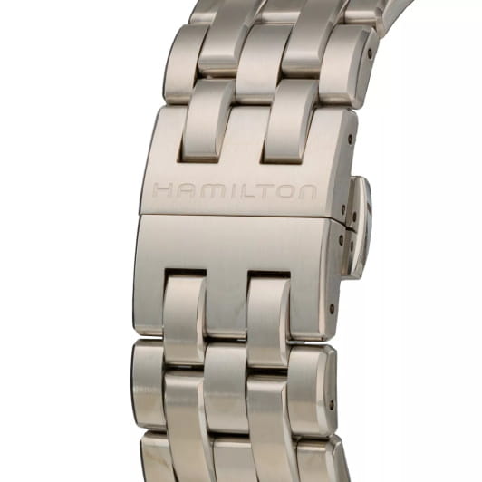 Мужские наручные часы Hamilton Jazzmaster Power Reserve Auto H89545121 элегантные часы, сочетающие классический дизайн и современные технологии. Часы оснащены автоматическим калибром H-13, обеспечивающей запас хода до 80 часов и стабильную точность. Шкала индикатора запаса хода позволяет в полной мере оценить всю мощь автономно функционирующего в течение 80 часов механизма. Корпус диаметром 42 мм выполнен из нержавеющей стали, обеспечивая прочность и долговечность. Стильный циферблат со стрелками с люминесцентным покрытиемЛюминесцентное покрытиеПозволяет считывать показания времени в темноте. Производители наносят на стрелки, часовые индексы, безель или поверхность циферблата светонакопительный состав, дающий холодное свечение.. Поверхность циферблата защищена сапфировым стекломСапфировое стеклоПрочный и надёжный материал из кристалла сапфира синтетического происхождения, характеризующийся особой твёрдостью и устойчивостью к царапинам и повреждениям., устойчивым к царапинам. Изысканный стальной браслет на застёжке-бабочке с кнопкамиЗастёжка "бабочка"Такой вид застёжки дополняется предохранителями, помогающими избежать случайного раскрытия браслета. Обладают изящным исполнением. обеспечивает комфортное ношение и надёжную фиксацию на запястье. Окошко даты находится в положении 3 часа. Класс водозащиты: 50 метров, позволит защитить корпус от случайных брызг или капель дождя.