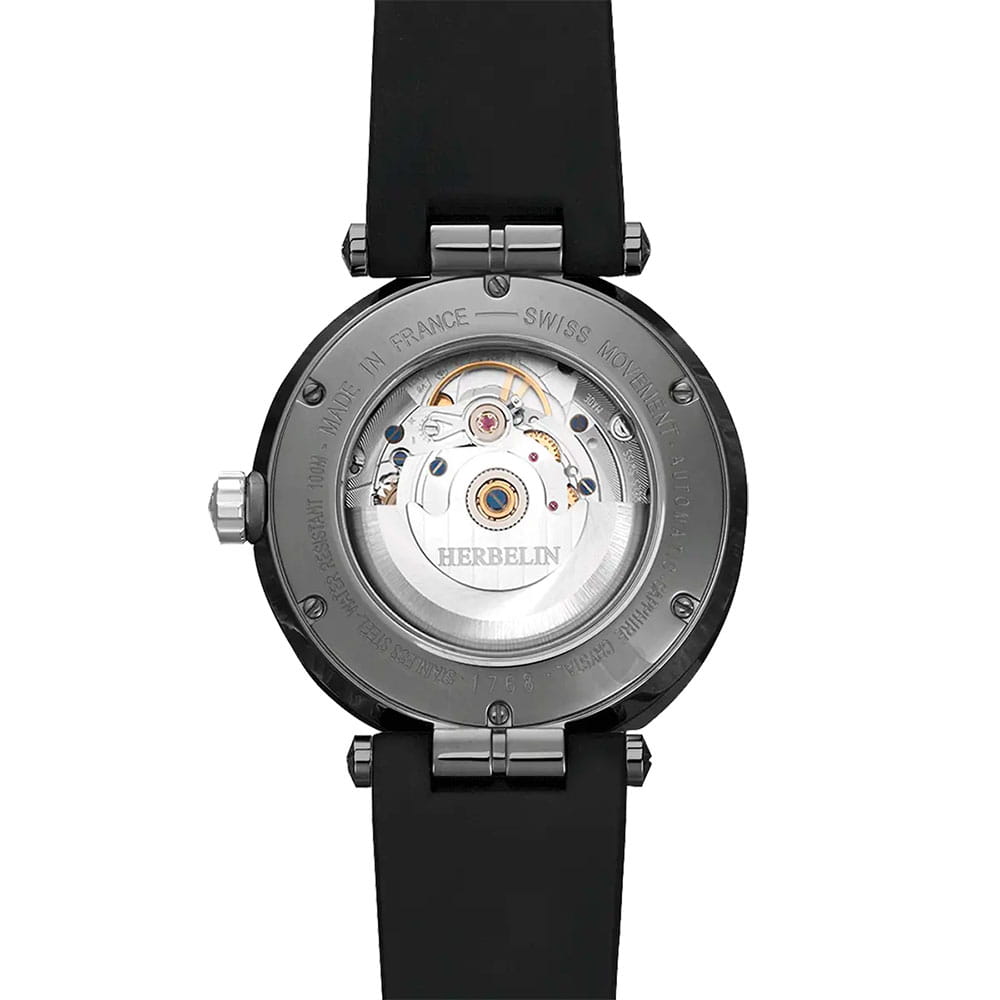 Мужские механические часы с автоподзаводом Herbelin Newport 1768G15CA – отражающий идеальное сочетание современного дизайна, надёжности и функциональности. Элегантный облик станет превосходным завершением образа, наделив его индивидуальным характером. Корпус из нержавеющей стали с DLC-покрытиемDLC-покрытиеDiamond like carbon - одно из лучших видов покрытия, представляющее собой углерод с алмазными свойствами. На поверхность материала наносятся распавшиеся молекулы углерода, превращающиеся в плёнку из алмазоподобных связей, которая перенимает твёрдость алмаза. черного цвета, диаметром 42 мм, идеально сбалансирован и элегантен. Сапфировое стеклоСапфировое стеклоПрочный и надёжный материал из кристалла сапфира синтетического происхождения, характеризующийся особой твёрдостью и устойчивостью к царапинам и повреждениям. защищает циферблат от царапин и устойчивое к механическим повреждениям. БезельБезельВнешний ободок, закрепляющий стекло. В спортивных часах так называется поворотное кольцо с делениями на циферблате, выполняет роль таймера – замеряет отрезки времени на шкале. Неподвижный безель – элемент декора. Однонаправленно вращающийся безель на дайверских часах позволяет фиксировать моменты погружения и выныривания на поверхность. украшен винтами. Окошко даты находится в положении 3 часа. Стрелки и метки с люминесцентным покрытиемЛюминесцентное покрытиеПозволяет считывать показания времени в темноте. Производители наносят на стрелки, часовые индексы, безель или поверхность циферблата светонакопительный состав, дающий холодное свечение.. Каучуковый ремешок на застёжке-бабочке с кнопкамиЗастёжка "бабочка"Такой вид застёжки дополняется предохранителями, помогающими избежать случайного раскрытия браслета. Обладают изящным исполнением. обеспечивает комфортное ношение. Водозащита 100 метров позволит плавать, нырять и заниматься другими водными видами спорта. Эта модель – отличный выбор для тех, кто ищет сочетание стиля, качества и функциональности. Часы станут не только полезным аксессуаром, но и выразительным элементом вашего имиджа.