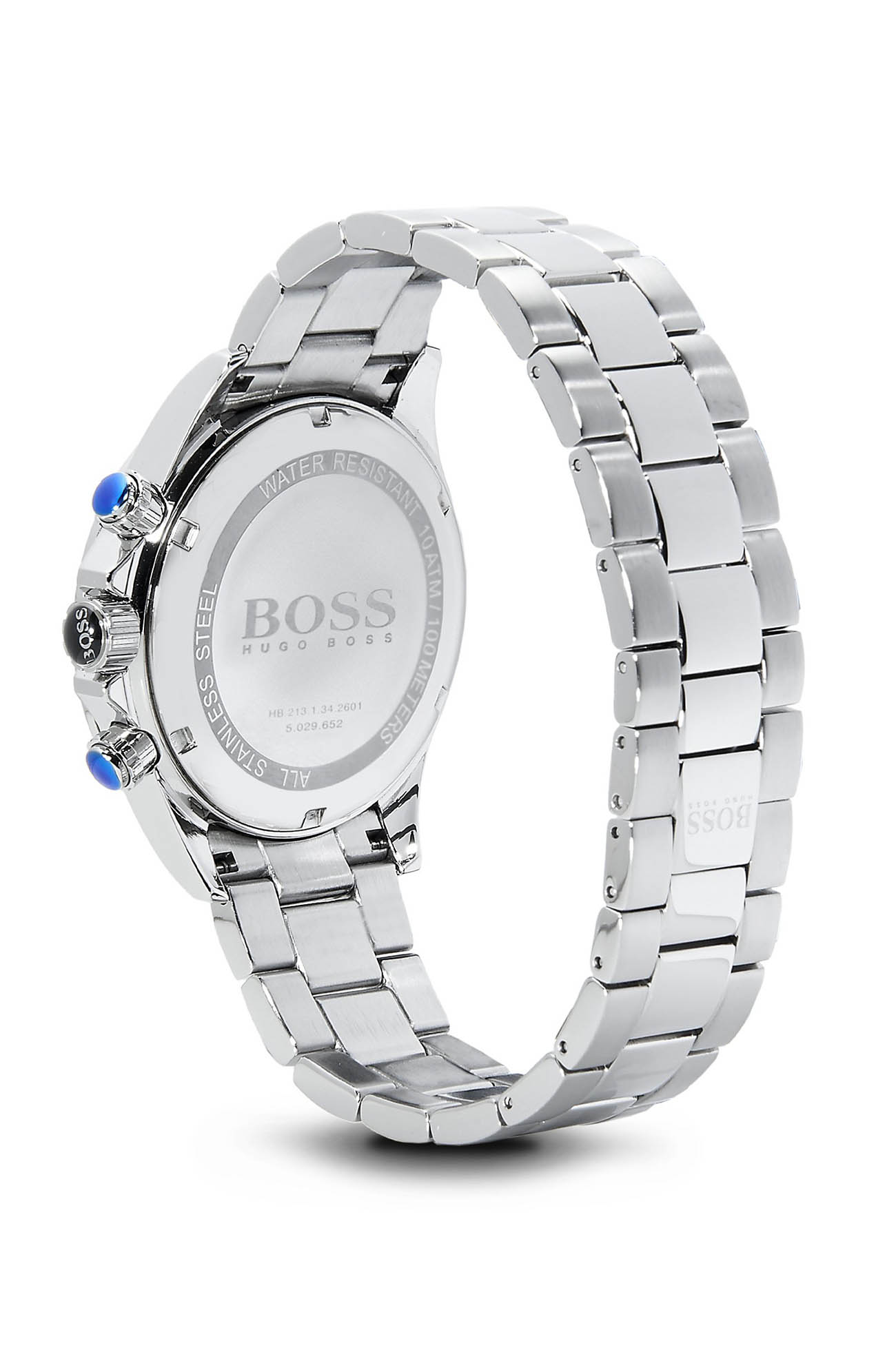 Мужские часы Hugo Boss Ikon HB1512962 представлены в строгом круглом корпусе из нержавеющей стали диаметром 44 мм с матовой отделкой, защищенным прочным минеральным стекломМинеральное стеклоМинеральное стекло представляет собой искусственно выращенный минерал кварца. Такое стекло отличается особой устойчивостью к повреждениям и царапинам. Уступает по некоторым качествам сапфировому стеклу.. Модель оснащена точным кварцевым механизмом с функцией хронографаХронографФункция позволяет измерять отрезки времени с особой точностью: часы, минуты, секунды. Верным признаком хронографа является наличие на циферблате 3 дополнительных окошек-счётчиков. (60-секундный и 30-минутный субдиалы) и 24-часовым индикатором. Циферблат с контрастными серебристыми метками и безелемБезельВнешний ободок, закрепляющий стекло. В спортивных часах так называется поворотное кольцо с делениями на циферблате, выполняет роль таймера – замеряет отрезки времени на шкале. Неподвижный безель – элемент декора. Однонаправленно вращающийся безель на дайверских часах позволяет фиксировать моменты погружения и выныривания на поверхность., украшенным тахиметрической шкалой, обеспечивает отличную читаемость. Стальной браслет шириной 22 мм обеспечивает комфортную посадку, а ударопрочный корпусУдаропрочный корпусМеханизм заключён в корпус, выполненный из современных материалов, устойчивых к ударам, механическим повреждениям и падению с высоты: инновационный пластик, карбон, нержавеющая сталь, титан. с делает модель надежной для повседневной носки.