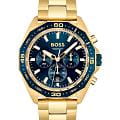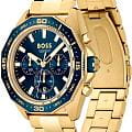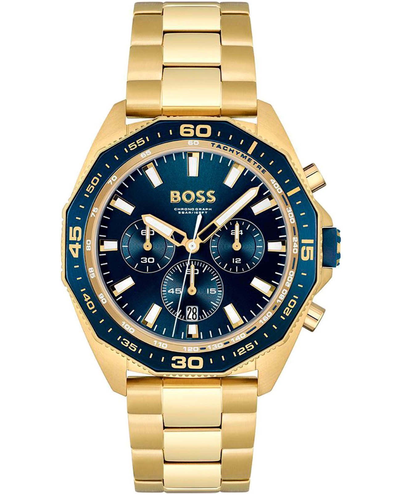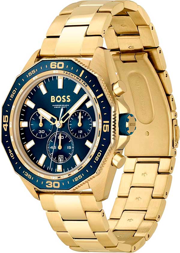 Мужские часы Hugo Boss Energy HB1513973 представлены в круглом 44-мм корпусе из нержавеющей стали с IP-покрытиемIP-покрытиеМетод ионного напыления. Демонстрирует повышенную устойчивость к истиранию, окислению и химическим веществам. Под воздействием высокого давления и температуры около 1500°C молекулы металла надёжно соединяются с частицами корпуса часов.. Оснащены кварцевым механизмом с функциями хронографаХронографФункция позволяет измерять отрезки времени с особой точностью: часы, минуты, секунды. Верным признаком хронографа является наличие на циферблате 3 дополнительных окошек-счётчиков., секундомеромСекундомерСекундоме́р — прибор, способный измерять интервалы времени с точностью до долей секунды. и тахиметромТахиметрРазмеченная шкала, располагается на ободке или безеле часов. Тахиметр позволяет рассчитать скорость на определённом участке пути, расстояние измеряется в километрах или милях. на безелеБезельВнешний ободок, закрепляющий стекло. В спортивных часах так называется поворотное кольцо с делениями на циферблате, выполняет роль таймера – замеряет отрезки времени на шкале. Неподвижный безель – элемент декора. Однонаправленно вращающийся безель на дайверских часах позволяет фиксировать моменты погружения и выныривания на поверхность.. Синий циферблат защищен устойчивым к царапинам минеральным стекломМинеральное стеклоМинеральное стекло представляет собой искусственно выращенный минерал кварца. Такое стекло отличается особой устойчивостью к повреждениям и царапинам. Уступает по некоторым качествам сапфировому стеклу.. Браслет из нержавеющей стали с IP-покрытиемIP-покрытиеМетод ионного напыления. Демонстрирует повышенную устойчивость к истиранию, окислению и химическим веществам. Под воздействием высокого давления и температуры около 1500°C молекулы металла надёжно соединяются с частицами корпуса часов. дополнен раскладной застёжкойРаскладная застёжкаТакой тип застёжки используется только на браслетах из металла. Она никогда не раскрывается полностью, происходит разделение на 2 и более частей. Раскладывающая застёжка снизит вероятность потери часов к минимуму., а стрелки покрыты люминесцентным составомЛюминесцентное покрытиеПозволяет считывать показания времени в темноте. Производители наносят на стрелки, часовые индексы, безель или поверхность циферблата светонакопительный состав, дающий холодное свечение. для видимости в темноте. Водонепроницаемость 50 метров (5 ATM) позволяет использовать часы для плавания.