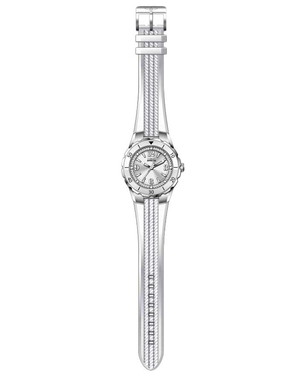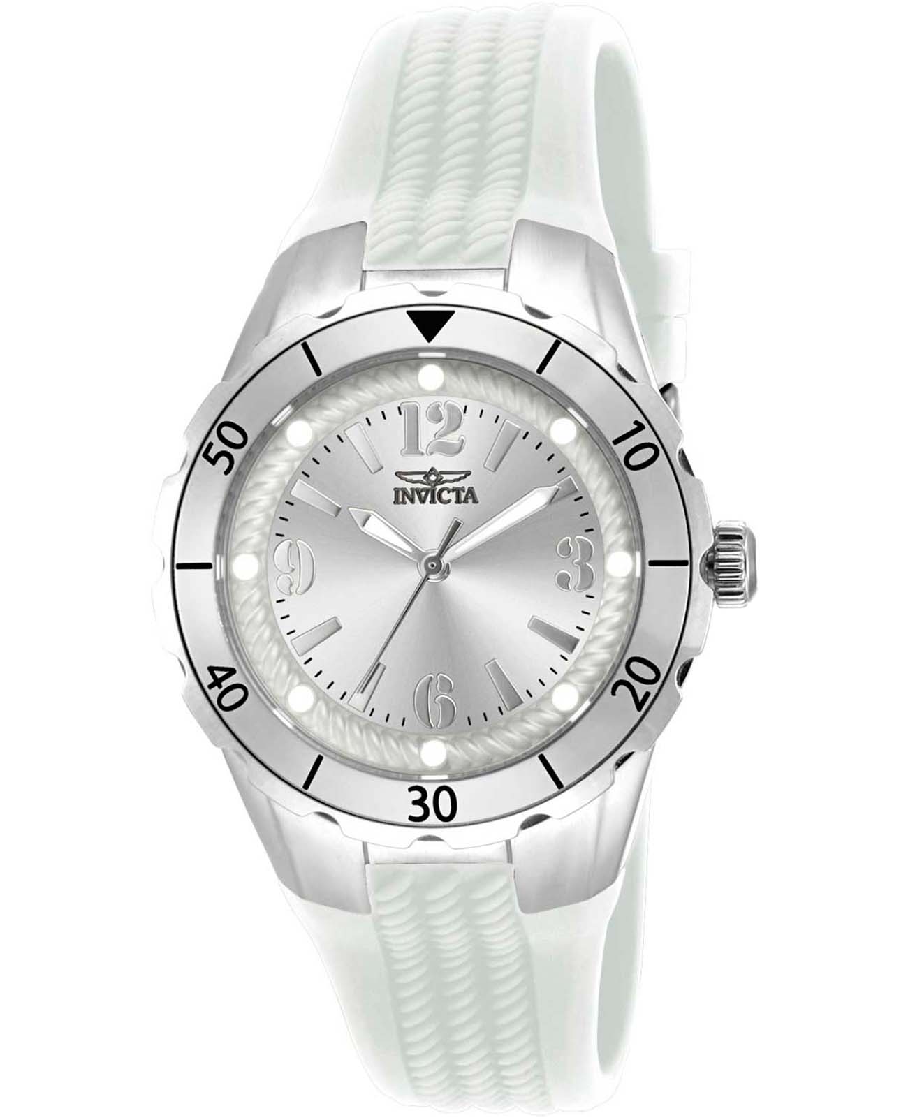 Женские наручные часы Invicta Angel модели IN17479 сочетают в себе элегантный дизайн и надежность современных технологий. Корпус выполнен из нержавеющей стали, что придает часам изысканный вид, идеально подходящий для повседневной носки или особых случаев. Метки выполнены в виде штрихов и точек с люминесцентным покрытиемЛюминесцентное покрытиеПозволяет считывать показания времени в темноте. Производители наносят на стрелки, часовые индексы, безель или поверхность циферблата светонакопительный состав, дающий холодное свечение., что добавляет классический шарм . Часы оснащены минеральным стекломМинеральное стеклоМинеральное стекло представляет собой искусственно выращенный минерал кварца. Такое стекло отличается особой устойчивостью к повреждениям и царапинам. Уступает по некоторым качествам сапфировому стеклу., обеспечивающим прочную защиту от царапин и надежность в использовании. Силиконовый ремешок на стандартной застежке гарантирует комфортное ношение и безопасность . Модель имеет водонепроницаемость до 50 метров, позволит защитить корпус от случайных брызг или капель дождя. Механизм часов кварцевый, работающий на базе калибра Seiko TMI PC21J, что гарантирует высокую точность хода без необходимости подзаводки.
