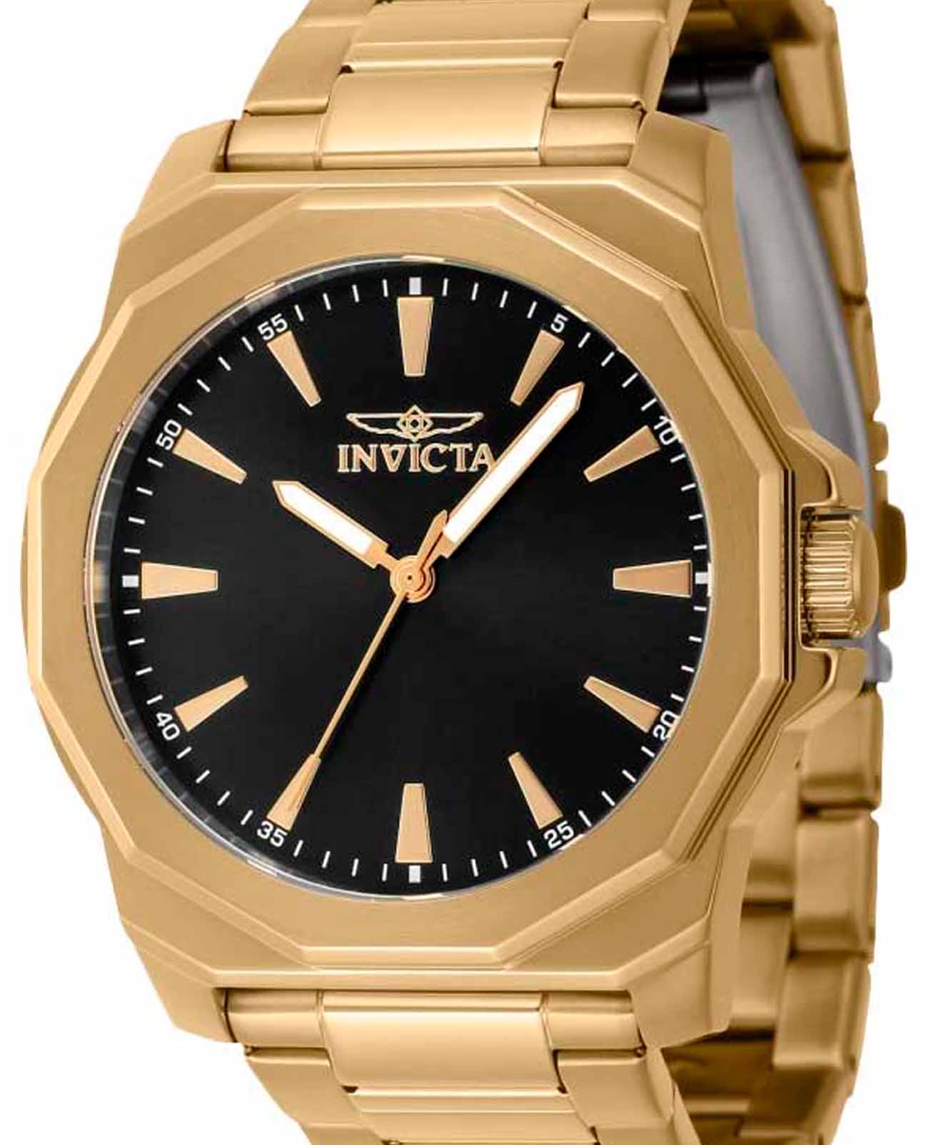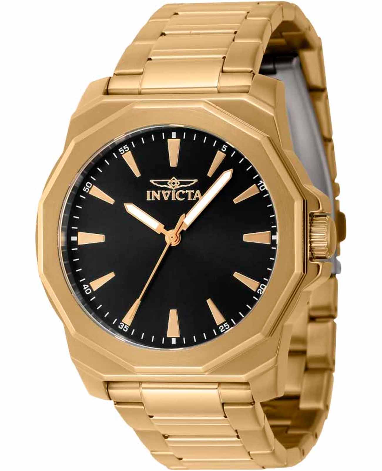 Мужские наручные часы Invicta IN46839, сочетающей в себе стильный дизайн и надежность современных технологий, обладают круглым корпусом, изготовленным из качественной стали с IP-покрытиемIP-покрытиеМетод ионного напыления. Демонстрирует повышенную устойчивость к истиранию, окислению и химическим веществам. Под воздействием высокого давления и температуры около 1500°C молекулы металла надёжно соединяются с частицами корпуса часов., что обеспечивает устойчивость к внешним воздействиям. Модель оснащена черным циферблатом, который гармонично дополняет минеральное стеклоМинеральное стеклоМинеральное стекло представляет собой искусственно выращенный минерал кварца. Такое стекло отличается особой устойчивостью к повреждениям и царапинам. Уступает по некоторым качествам сапфировому стеклу., прошедшее специальную закалку для придания большей прочности . Браслет выполнен так же из стали с IP-покрытиемIP-покрытиеМетод ионного напыления. Демонстрирует повышенную устойчивость к истиранию, окислению и химическим веществам. Под воздействием высокого давления и температуры около 1500°C молекулы металла надёжно соединяются с частицами корпуса часов.