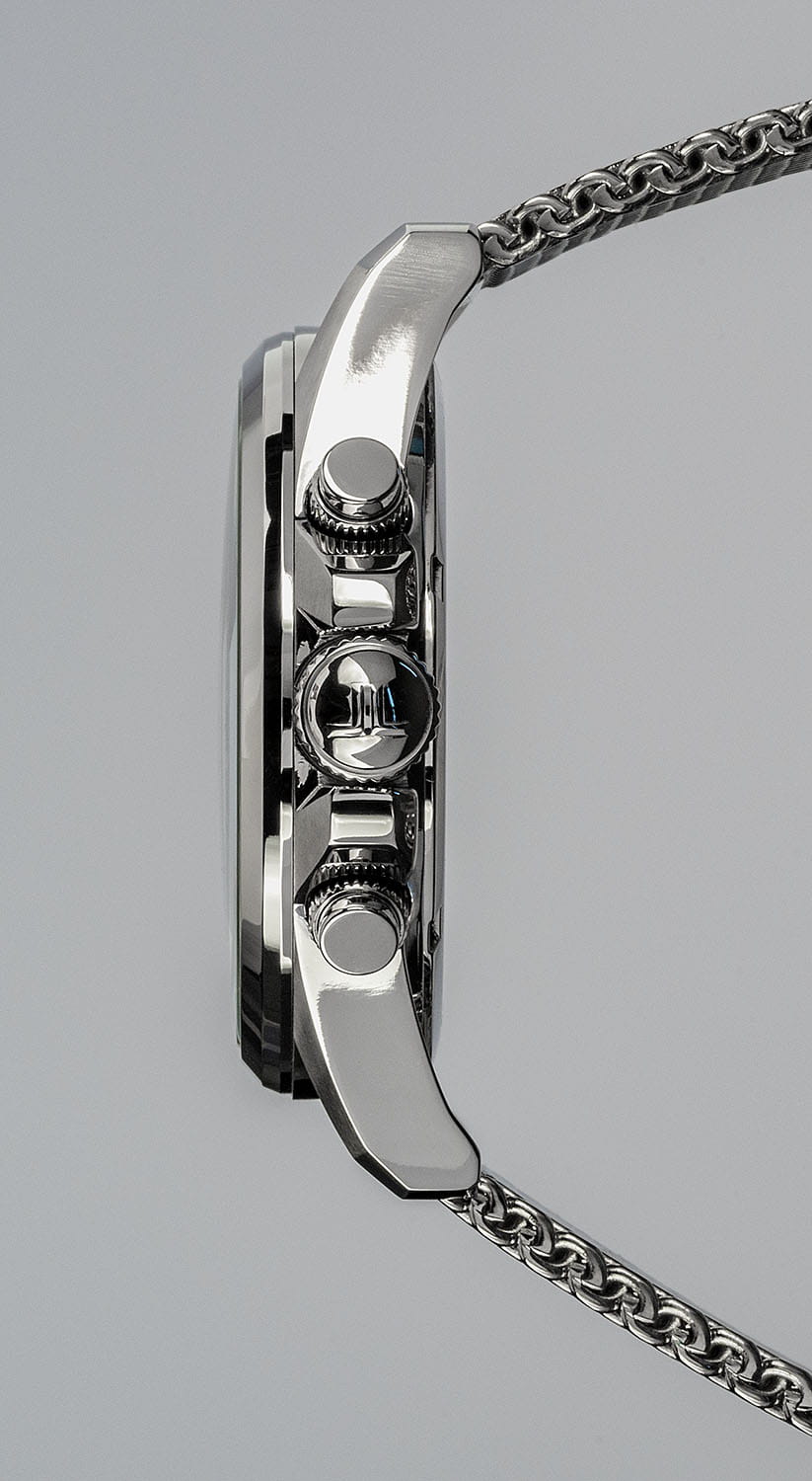 Мужские часы Jacques Lemans Liverpool 1-1117VS с минеральным стекломМинеральное стеклоМинеральное стекло представляет собой искусственно выращенный минерал кварца. Такое стекло отличается особой устойчивостью к повреждениям и царапинам. Уступает по некоторым качествам сапфировому стеклу., кварцевый механизм с высокой точностью. Часы- хронографХронографФункция позволяет измерять отрезки времени с особой точностью: часы, минуты, секунды. Верным признаком хронографа является наличие на циферблате 3 дополнительных окошек-счётчиков. с секундомеромСекундомерСекундоме́р — прибор, способный измерять интервалы времени с точностью до долей секунды. представляют собой стильный аксессуар, отражающий идеальное сочетание современного дизайна, надёжности и функциональности.  Корпус и безельБезельВнешний ободок, закрепляющий стекло. В спортивных часах так называется поворотное кольцо с делениями на циферблате, выполняет роль таймера – замеряет отрезки времени на шкале. Неподвижный безель – элемент декора. Однонаправленно вращающийся безель на дайверских часах позволяет фиксировать моменты погружения и выныривания на поверхность. из нержавеющей стали. На циферблате расположены три дополнительных индикатора и окошко даты.  Окно даты расположено между 4 и 5 часами. Стрелки и метки с люминесцентным покрытиемЛюминесцентное покрытиеПозволяет считывать показания времени в темноте. Производители наносят на стрелки, часовые индексы, безель или поверхность циферблата светонакопительный состав, дающий холодное свечение.. Класс водозащиты: 200 метров, позволит плавать, нырять и заниматься другими водными видами спорта. Миланский браслет из нержавеющей стали на раскладной застёжкойРаскладная застёжкаТакой тип застёжки используется только на браслетах из металла. Она никогда не раскрывается полностью, происходит разделение на 2 и более частей. Раскладывающая застёжка снизит вероятность потери часов к минимуму..