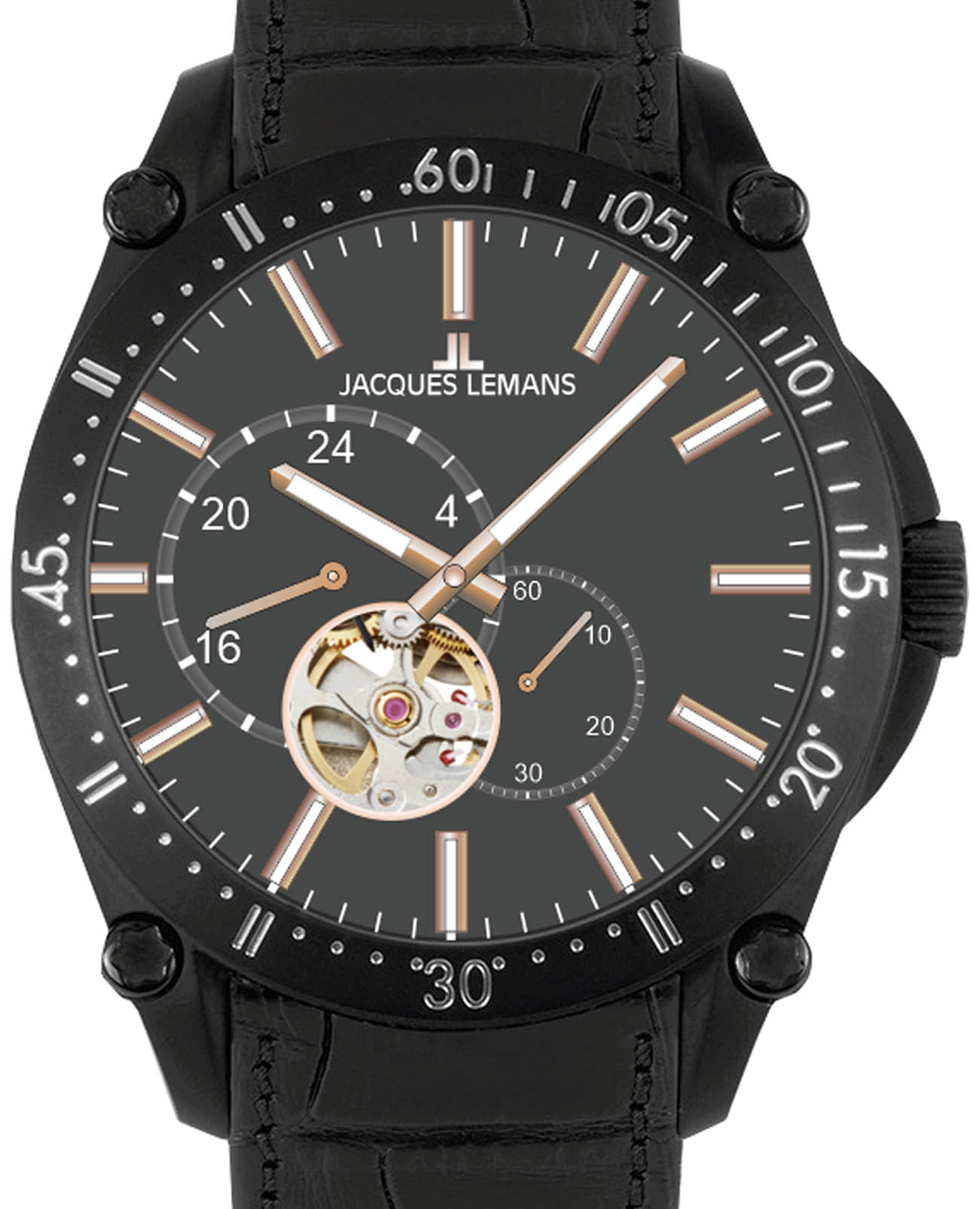 Мужские механические часы-скелетоны Jacques Lemans 1-2201D – лаконичная красота и изысканная элегантность. Оригинальная модель с классическим оформлением станет превосходным завершением образа, наделив его индивидуальным характером. Корпус выполнен из нержавеющей стали с PVD-покрытиемPVDУльтратонкое покрытие наносится в технике вакуумного напыления, сочетает в себе нитрид титана особой прочности со слоем золота или оксида хрома. Несёт в себе декоративную или защитную функцию. черного цвета, диаметром 44 мм, что обеспечивает долговечность и утончённый внешний вид. Минеральное стеклоМинеральное стеклоМинеральное стекло представляет собой искусственно выращенный минерал кварца. Такое стекло отличается особой устойчивостью к повреждениям и царапинам. Уступает по некоторым качествам сапфировому стеклу. с сапфировым напылением защищает циферблат от царапин. Кожаный ремешок на стандартной застёжке обеспечивает комфортное ношение. Водозащита 100 метров позволит плавать, нырять и заниматься другими водными видами спорта. Стрелки и метки с люминесцентным покрытиемЛюминесцентное покрытиеПозволяет считывать показания времени в темноте. Производители наносят на стрелки, часовые индексы, безель или поверхность циферблата светонакопительный состав, дающий холодное свечение. позволяющие легко определять время даже в темноте. БезельБезельВнешний ободок, закрепляющий стекло. В спортивных часах так называется поворотное кольцо с делениями на циферблате, выполняет роль таймера – замеряет отрезки времени на шкале. Неподвижный безель – элемент декора. Однонаправленно вращающийся безель на дайверских часах позволяет фиксировать моменты погружения и выныривания на поверхность. дополнен минутной шкалой. Запас хода 42 ч. На отдельные циферблаты вынесены индикатор 24-х часов и малая секундная стрелка. Сквозь прозрачное окошко можно наблюдать за работой механизма часов. Рифленая заводная головка с защитой. Это аксессуар для мужчины, который ценит классический стиль и функциональность.