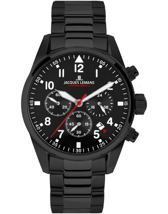 Мужские кварцевые часы-хронографХронографФункция позволяет измерять отрезки времени с особой точностью: часы, минуты, секунды. Верным признаком хронографа является наличие на циферблате 3 дополнительных окошек-счётчиков. Jacques Lemans Sport 42-2H. Корпус изготовлен из нержавеющей стали с PVD-покрытиемPVDУльтратонкое покрытие наносится в технике вакуумного напыления, сочетает в себе нитрид титана особой прочности со слоем золота или оксида хрома. Несёт в себе декоративную или защитную функцию.. Водозащита: 100 метров, позволит плавать, нырять и заниматься другими водными видами спорта. Минеральное стеклоМинеральное стеклоМинеральное стекло представляет собой искусственно выращенный минерал кварца. Такое стекло отличается особой устойчивостью к повреждениям и царапинам. Уступает по некоторым качествам сапфировому стеклу. устойчивое к появлению царапин, обладающее высокой прозрачностью.