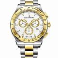 Jacques Philippe JPQGC707328 — швейцарские наручные часы, которые станут идеальным дополнением к образу современного мужчины, ценящего стиль и качество, это стильные швейцарские часы с функцией хронографаХронографФункция позволяет измерять отрезки времени с особой точностью: часы, минуты, секунды. Верным признаком хронографа является наличие на циферблате 3 дополнительных окошек-счётчиков. и секундомераСекундомерСекундоме́р — прибор, способный измерять интервалы времени с точностью до долей секунды.. Корпус и браслет выполнены из высокопрочной нержавеющей стали 316L, что подчеркивает статус владельца и гарантирует долговечность аксессуара. Классический дизайн с белым циферблатом гармонично сочетается с современными деталями: тахиметрическаяТахиметрРазмеченная шкала, располагается на ободке или безеле часов. Тахиметр позволяет рассчитать скорость на определённом участке пути, расстояние измеряется в километрах или милях. шкала на безелеБезельВнешний ободок, закрепляющий стекло. В спортивных часах так называется поворотное кольцо с делениями на циферблате, выполняет роль таймера – замеряет отрезки времени на шкале. Неподвижный безель – элемент декора. Однонаправленно вращающийся безель на дайверских часах позволяет фиксировать моменты погружения и выныривания на поверхность. с золотистым IP-покрытиемIP-покрытиеМетод ионного напыления. Демонстрирует повышенную устойчивость к истиранию, окислению и химическим веществам. Под воздействием высокого давления и температуры около 1500°C молекулы металла надёжно соединяются с частицами корпуса часов. добавляет функциональности, а окошко даты, расположенное на отметке «4 часа», обеспечивает дополнительное удобство. Сапфировое стеклоСапфировое стеклоПрочный и надёжный материал из кристалла сапфира синтетического происхождения, характеризующийся особой твёрдостью и устойчивостью к царапинам и повреждениям. надежно защищает часы от царапин и повреждений, сохраняя их безупречный внешний вид. Кварцевый механизм обеспечивает точный ход и не требует частого обслуживания. Водозащита до 10 атмосфер (100 метров) позволяет не снимать часы во время плавания. Стрелки имеют люминесцентное покрытиеЛюминесцентное покрытиеПозволяет считывать показания времени в темноте. Производители наносят на стрелки, часовые индексы, безель или поверхность циферблата светонакопительный состав, дающий холодное свечение. для удобства чтения времени в темноте. Стальной браслет с частичным золотистым IP-покрытиемIP-покрытиеМетод ионного напыления. Демонстрирует повышенную устойчивость к истиранию, окислению и химическим веществам. Под воздействием высокого давления и температуры около 1500°C молекулы металла надёжно соединяются с частицами корпуса часов. шириной 20 мм оснащен застежкой «бабочка»Застёжка "бабочка"Такой вид застёжки дополняется предохранителями, помогающими избежать случайного раскрытия браслета. Обладают изящным исполнением. для комфортного ношения в течение всего дня.