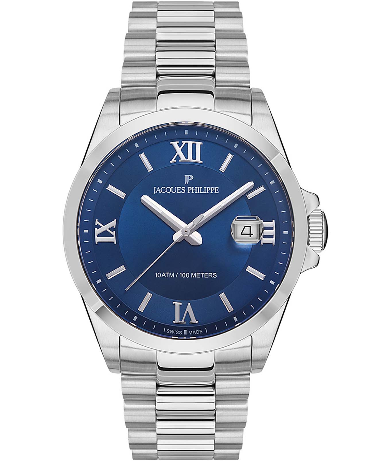 Швейцарские мужские часы Jacques Philippe Solis JPQGS231336, кварцевый механизм с высокой точностью. Сапфировое стеклоСапфировое стеклоПрочный и надёжный материал из кристалла сапфира синтетического происхождения, характеризующийся особой твёрдостью и устойчивостью к царапинам и повреждениям. устойчивое к появлению царапин, обладающее высокой прозрачностью. Корпус часов изготовлен из нержавеющей стали. Класс водозащиты: 100 метров, позволит плавать, нырять и заниматься другими водными видами спорта. Стальной браслет на застёжке-бабочке с кнопкамиЗастёжка "бабочка"Такой вид застёжки дополняется предохранителями, помогающими избежать случайного раскрытия браслета. Обладают изящным исполнением. . Окошко даты находится в положении 6 часов. Стрелки и метки с люминесцентным покрытиемЛюминесцентное покрытиеПозволяет считывать показания времени в темноте. Производители наносят на стрелки, часовые индексы, безель или поверхность циферблата светонакопительный состав, дающий холодное свечение..