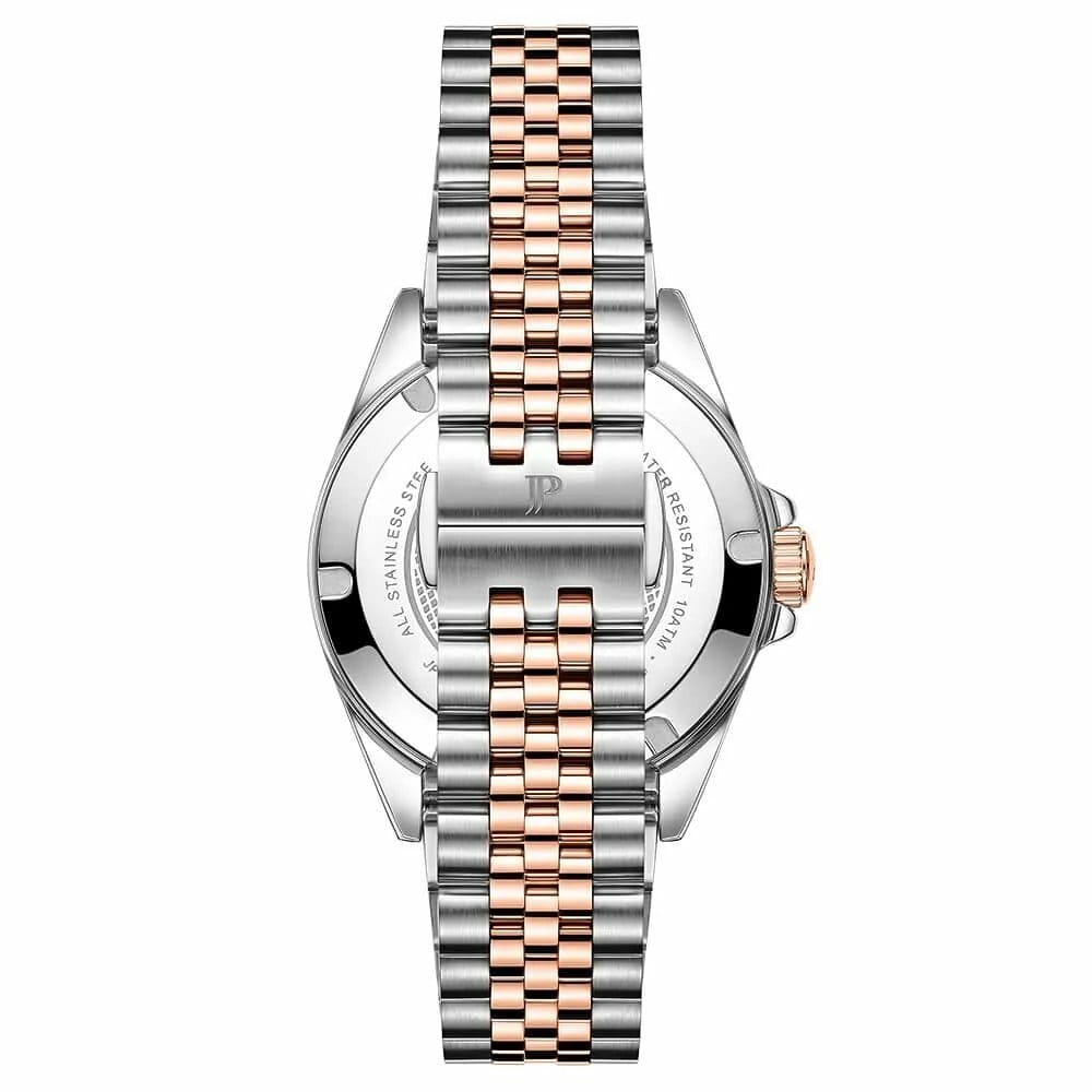 Jacques Philippe JPQGS597328V2 — мужские часы в сдержанном классическом исполнении с акцентом на простоту и надёжность. Корпус диаметром 40 мм выполнен из нержавеющей стали, а его умеренная толщина — около 12 мм — делает модель универсальной и комфортной в повседневной носке. БезельБезельВнешний ободок, закрепляющий стекло. В спортивных часах так называется поворотное кольцо с делениями на циферблате, выполняет роль таймера – замеряет отрезки времени на шкале. Неподвижный безель – элемент декора. Однонаправленно вращающийся безель на дайверских часах позволяет фиксировать моменты погружения и выныривания на поверхность. с PVD-покрытиемPVDУльтратонкое покрытие наносится в технике вакуумного напыления, сочетает в себе нитрид титана особой прочности со слоем золота или оксида хрома. Несёт в себе декоративную или защитную функцию.. Циферблат оформлен в светлом металлическом тоне с тонкими стрелками, лаконичными часовыми метками и аккуратным окошком даты в позиции «3 часа». Минималистичный стиль подчёркивает строгость и чистоту дизайна. Поверхность защищена устойчивым к царапинам сапфировым стекломСапфировое стеклоПрочный и надёжный материал из кристалла сапфира синтетического происхождения, характеризующийся особой твёрдостью и устойчивостью к царапинам и повреждениям., которое обеспечивает хорошую читаемость и долговечность. Механизм — точный швейцарский кварц, не требующий подзавода. Он обеспечивает стабильную и бесперебойную работу часов, сохраняя точность в любых условиях. Браслет из нержавеющей стали с PVD-покрытиемPVDУльтратонкое покрытие наносится в технике вакуумного напыления, сочетает в себе нитрид титана особой прочности со слоем золота или оксида хрома. Несёт в себе декоративную или защитную функцию. визуально продолжает корпус и фиксируется с помощью надёжной застёжки, обеспечивая комфортную посадку. Ширина браслета — 22 мм. Водозащита до 10 ATM позволяет использовать часы не только в повседневной жизни, но и при активности на воде. Jacques Philippe — это надёжная и универсальная модель для тех, кто ценит швейцарскую точность, простоту и уверенный стиль без лишних деталей.