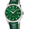 Jaguar J1042/4 из коллекции Acamar — элегантные мужские часы, сочетающие швейцарское качество и современный дизайн. Корпус диаметром 40 мм выполнен из нержавеющей стали, что обеспечивает прочность и долговечность. Сапфировое стеклоСапфировое стеклоПрочный и надёжный материал из кристалла сапфира синтетического происхождения, характеризующийся особой твёрдостью и устойчивостью к царапинам и повреждениям. защищает циферблат от царапин и повреждений. Зеленый циферблат с серебристыми стрелками подчёркивает изысканный стиль. Часы оснащены функцией индикации даты, расположенной в окошке на отметке «3 часа», что добавляет практичности. Ремешок из кожи гарантирует комфортное ношение. Классическая застёжка обеспечивает надёжную фиксацию на запястье. Водозащита до 5 ATM (50 метров) делает часы подходящими для повседневного использования. Jaguar J1042/4 — это идеальный выбор для мужчин, которые ценят классический дизайн и современные технологии.