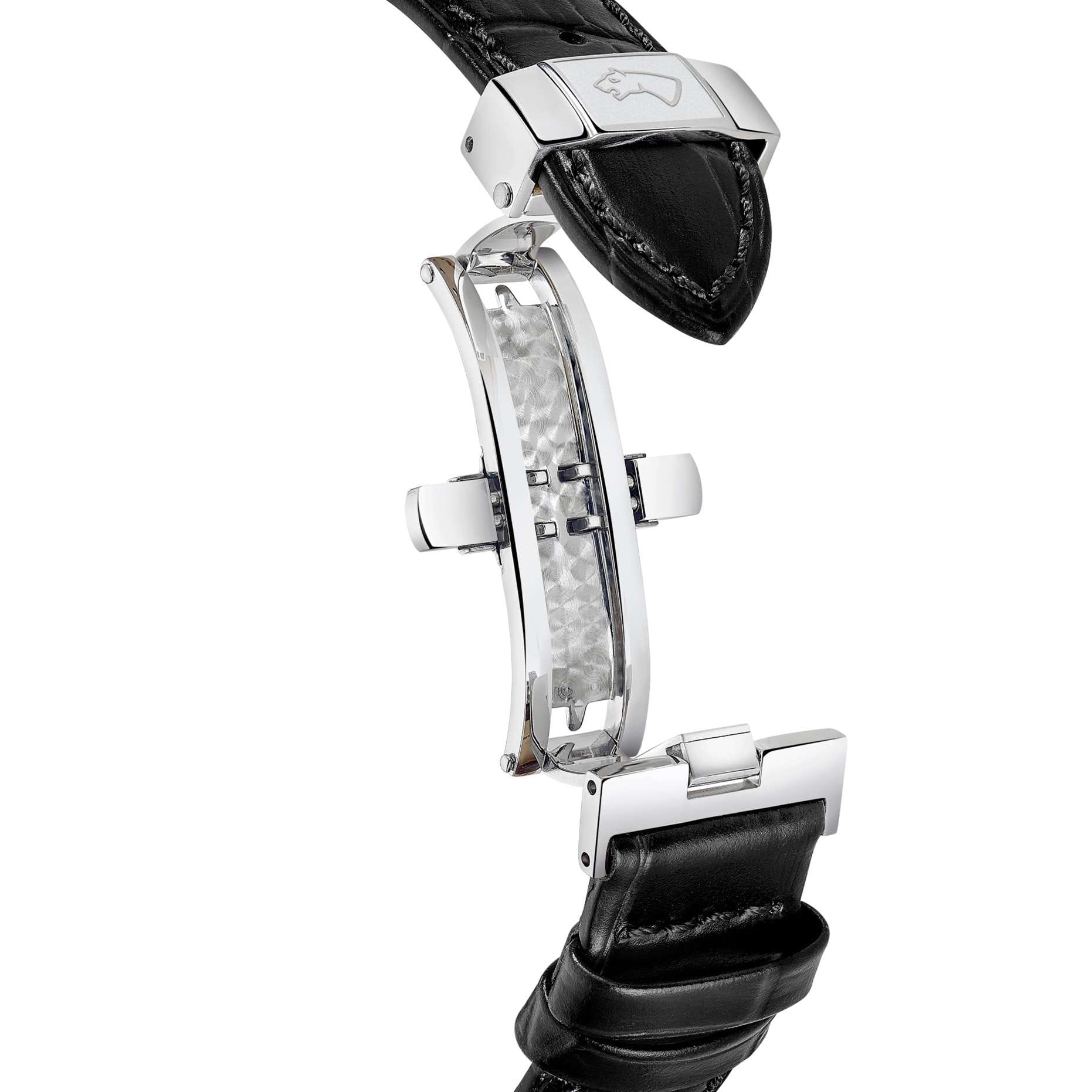 Мужские швейцарские часы Jaguar Classic J1042/6 —  лаконичная красота и изысканная элегантность. Оригинальная модель с классическим оформлением станет превосходным завершением образа, наделив его индивидуальным характером.  Корпус из нержавеющей стали диаметром 40 мм идеально сбалансирован и элегантен. Сапфировое стеклоСапфировое стеклоПрочный и надёжный материал из кристалла сапфира синтетического происхождения, характеризующийся особой твёрдостью и устойчивостью к царапинам и повреждениям. с антибликовым покрытием защищает циферблат от царапин и обеспечивает отличную читаемость при любом освещении. Кожаный ремешок на застёжке-бабочке с кнопкамиЗастёжка "бабочка"Такой вид застёжки дополняется предохранителями, помогающими избежать случайного раскрытия браслета. Обладают изящным исполнением. идеально дополняют дизайн часов, обеспечивая комфортное ношение. Окошко даты находится в положении 3 часа. Часы обладают  водонепроницаемостью до 50 метров позволит защитить корпус от случайных брызг или капель дождя. Это аксессуар для мужчины, который ценит классический стиль и функциональность.
