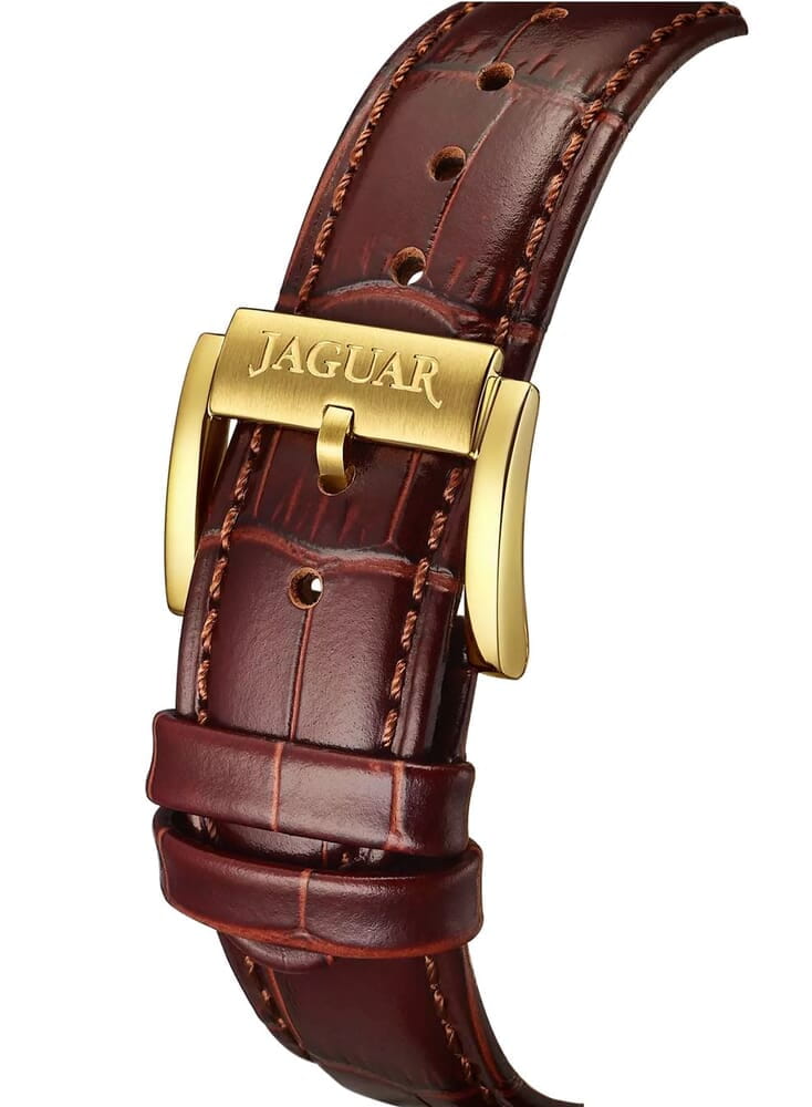 Jaguar Le Chronographe J976/1 — это мужские часы, сочетающие классический дизайн с современными функциями. Корпус диаметром 45 мм выполнен из нержавеющей стали с PVD-покрытиемPVDУльтратонкое покрытие наносится в технике вакуумного напыления, сочетает в себе нитрид титана особой прочности со слоем золота или оксида хрома. Несёт в себе декоративную или защитную функцию., что обеспечивает прочность и элегантный внешний вид. Сапфировое стеклоСапфировое стеклоПрочный и надёжный материал из кристалла сапфира синтетического происхождения, характеризующийся особой твёрдостью и устойчивостью к царапинам и повреждениям. защищает циферблат от царапин и повреждений. Изысканный циферблат со стильными индексами и стрелками подчёркивает утончённый стиль. Часы с хронографом. Часы оснащены стильным кожаным ремешком и классической застежкой, идеальной системой крепления для кожаного ремешка, которая гарантирует, что часы будут надежно оставаться на месте в любое время. Водозащита до 10 ATM (100 метров) делает часы подходящими для плавания и занятий водными видами спорта. Jaguar J976/1 — идеальный выбор для мужчин, которые ценят швейцарское качество и современные технологии.
