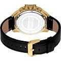 JUST CAVALLI JC1G346L0025 — стильные итальянские часы с функцией второй часовой поясВторой часовой поясФункция, позволяющая отображать время двух часовых поясов одновременно., которые сочетают в себе элегантность и современный функционал. Круглый корпус диаметром 45 мм выполнен из нержавеющей стали с PVD-покрытиеPVDУльтратонкое покрытие наносится в технике вакуумного напыления, сочетает в себе нитрид титана особой прочности со слоем золота или оксида хрома. Несёт в себе декоративную или защитную функцию., толщина корпуса составляет 12 мм, что придает модели выразительный внешний вид и надежную защиту от внешних воздействий. Часы оснащены кварцевым механизмом, также обладают функцией отображения даты, что делает их удобными для ежедневного использования. Минеральное стеклоМинеральное стеклоМинеральное стекло представляет собой искусственно выращенный минерал кварца. Такое стекло отличается особой устойчивостью к повреждениям и царапинам. Уступает по некоторым качествам сапфировому стеклу. защищает часы от царапин, а водозащита 50 метров идеально подходит для повседневного ношения. Кожаный ремешок на стандартной застёжке обеспечивает комфортное ношение.