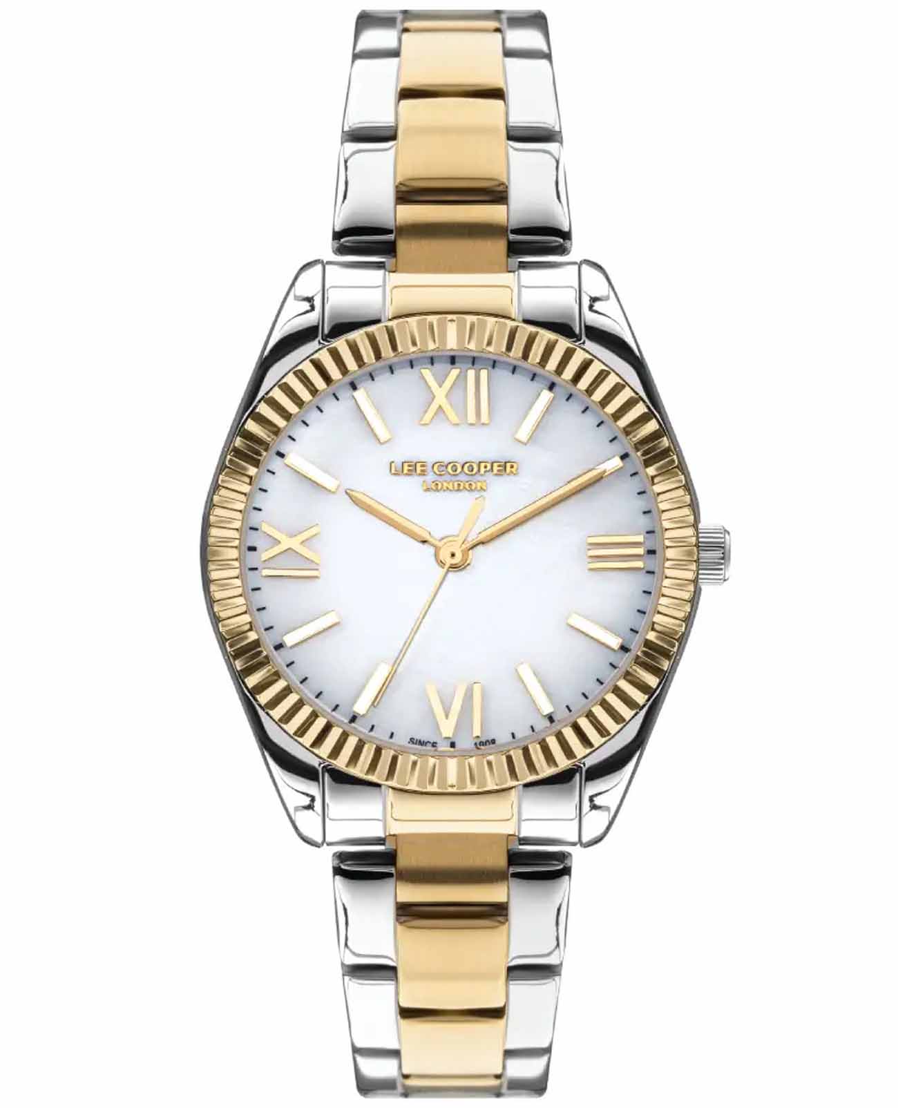 Женские наручные часы Lee Cooper LC07459.220 — это элегантная модель с утончённым дизайном. Корпус диаметром 32 мм выполнен из суперметалла, что придаёт часам изысканный вид. Серебристый циферблат украшен изящными римскими цифрами и стрелками обеспечивая удобное считывание времени. Циферблат защищён минеральным стекломМинеральное стеклоМинеральное стекло представляет собой искусственно выращенный минерал кварца. Такое стекло отличается особой устойчивостью к повреждениям и царапинам. Уступает по некоторым качествам сапфировому стеклу., устойчивым к царапинам. Часы работают на кварцевом механизме, обеспечивая точность хода. Браслет из нержавеющей стали с раскладной застёжкойРаскладная застёжкаТакой тип застёжки используется только на браслетах из металла. Она никогда не раскрывается полностью, происходит разделение на 2 и более частей. Раскладывающая застёжка снизит вероятность потери часов к минимуму. гарантирует комфортное ношение и надёжную фиксацию на запястье. Водозащита 30 метров защищает часы от случайных брызг и дождя, делая их подходящими для повседневного использования. Метки покрыты люминесцентным покрытиемЛюминесцентное покрытиеПозволяет считывать показания времени в темноте. Производители наносят на стрелки, часовые индексы, безель или поверхность циферблата светонакопительный состав, дающий холодное свечение., обеспечивая удобное считывание показаний в условиях недостаточного освещения. БезельБезельВнешний ободок, закрепляющий стекло. В спортивных часах так называется поворотное кольцо с делениями на циферблате, выполняет роль таймера – замеряет отрезки времени на шкале. Неподвижный безель – элемент декора. Однонаправленно вращающийся безель на дайверских часах позволяет фиксировать моменты погружения и выныривания на поверхность. с IP-покрытиемIP-покрытиеМетод ионного напыления. Демонстрирует повышенную устойчивость к истиранию, окислению и химическим веществам. Под воздействием высокого давления и температуры около 1500°C молекулы металла надёжно соединяются с частицами корпуса часов..