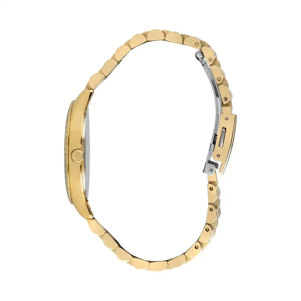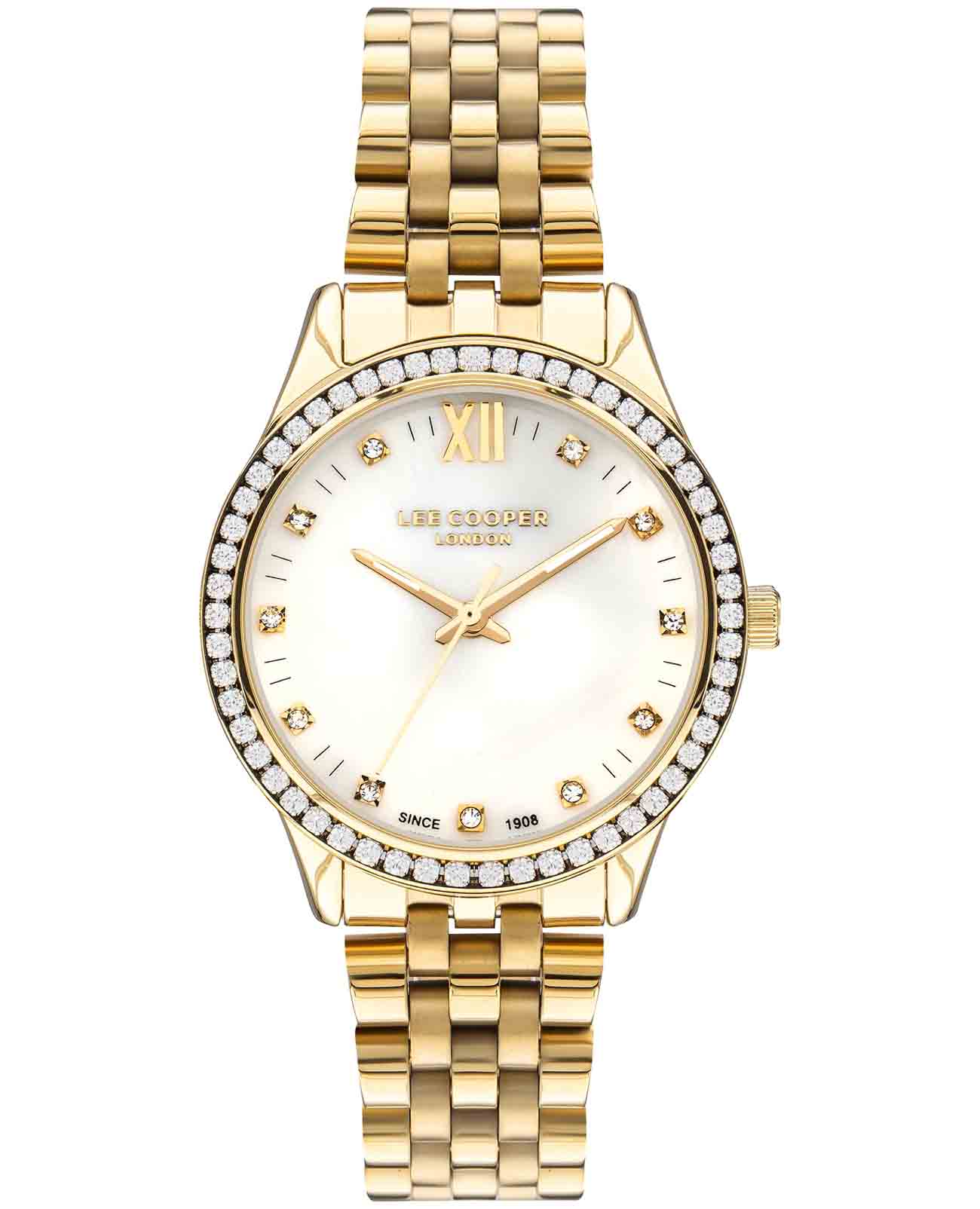 Женские наручные часы Lee Cooper LC07483.120 — это элегантная модель с утончённым дизайном. Корпус диаметром 35 мм выполнен из суперметалла с IP-покрытиемIP-покрытиеМетод ионного напыления. Демонстрирует повышенную устойчивость к истиранию, окислению и химическим веществам. Под воздействием высокого давления и температуры около 1500°C молекулы металла надёжно соединяются с частицами корпуса часов., что придаёт часам изысканный вид. Серебристый циферблат украшен изящными стрелками и вставками из циркония в виде меток, обеспечивая удобное считывание времени. Циферблат защищён минеральным стекломМинеральное стеклоМинеральное стекло представляет собой искусственно выращенный минерал кварца. Такое стекло отличается особой устойчивостью к повреждениям и царапинам. Уступает по некоторым качествам сапфировому стеклу., устойчивым к царапинам. Часы работают на кварцевом механизме, обеспечивая точность хода. Браслет из нержавеющей стали с раскладной застёжкойРаскладная застёжкаТакой тип застёжки используется только на браслетах из металла. Она никогда не раскрывается полностью, происходит разделение на 2 и более частей. Раскладывающая застёжка снизит вероятность потери часов к минимуму. гарантирует комфортное ношение и надёжную фиксацию на запястье. Водозащита 30 метров защищает часы от случайных брызг и дождя, делая их подходящими для повседневного использования. БезельБезельВнешний ободок, закрепляющий стекло. В спортивных часах так называется поворотное кольцо с делениями на циферблате, выполняет роль таймера – замеряет отрезки времени на шкале. Неподвижный безель – элемент декора. Однонаправленно вращающийся безель на дайверских часах позволяет фиксировать моменты погружения и выныривания на поверхность. инкрустирован кристаллами. Стрелки покрыты люминесцентным покрытиемЛюминесцентное покрытиеПозволяет считывать показания времени в темноте. Производители наносят на стрелки, часовые индексы, безель или поверхность циферблата светонакопительный состав, дающий холодное свечение., обеспечивая удобное считывание показаний в условиях недостаточного освещения.
