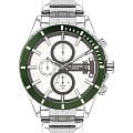Мужские часы Lee Cooper LC07529.330 — это стильное сочетание элегантности и современного дизайна. Круглый корпус диаметром 44 мм выполнен из суперметалла серебристого цвета. БезельБезельВнешний ободок, закрепляющий стекло. В спортивных часах так называется поворотное кольцо с делениями на циферблате, выполняет роль таймера – замеряет отрезки времени на шкале. Неподвижный безель – элемент декора. Однонаправленно вращающийся безель на дайверских часах позволяет фиксировать моменты погружения и выныривания на поверхность. с IP-покрытиемIP-покрытиеМетод ионного напыления. Демонстрирует повышенную устойчивость к истиранию, окислению и химическим веществам. Под воздействием высокого давления и температуры около 1500°C молекулы металла надёжно соединяются с частицами корпуса часов. зеленого цвета придает модели особый вид. Циферблат защищен минеральным стекломМинеральное стеклоМинеральное стекло представляет собой искусственно выращенный минерал кварца. Такое стекло отличается особой устойчивостью к повреждениям и царапинам. Уступает по некоторым качествам сапфировому стеклу., обеспечивающим устойчивость к царапинам. Метки в виде штрихов. Часы оснащены надежным кварцевым механизмом, а металлический браслет на раскладной застёжкеРаскладная застёжкаТакой тип застёжки используется только на браслетах из металла. Она никогда не раскрывается полностью, происходит разделение на 2 и более частей. Раскладывающая застёжка снизит вероятность потери часов к минимуму. гарантирует комфортную посадку на запястье. Окошко даты находится в положении 3 часа. Стрелки и метки с люминесцентным покрытиемЛюминесцентное покрытиеПозволяет считывать показания времени в темноте. Производители наносят на стрелки, часовые индексы, безель или поверхность циферблата светонакопительный состав, дающий холодное свечение. позволяют легко считывать время даже в условиях недостаточного освещения. Мультифункциональная модель с индикацией даты, дня недели, с дополнительным 24-х часовым индикатором. Водозащита 50 метров позволит защитить корпус от случайных брызг или капель дождя. Lee Cooper  — отличный выбор для тех, кто ценит утонченность и качество.