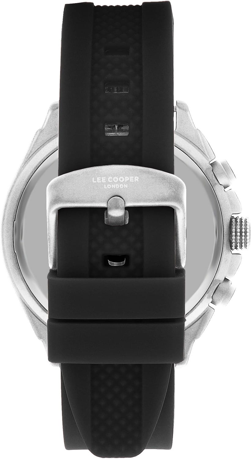 Мужские часы Lee Cooper LC07545.351 — это стильное сочетание элегантности и современного дизайна. Круглый корпус диаметром 45 мм выполнен из суперметалла серебристого цвета. БезельБезельВнешний ободок, закрепляющий стекло. В спортивных часах так называется поворотное кольцо с делениями на циферблате, выполняет роль таймера – замеряет отрезки времени на шкале. Неподвижный безель – элемент декора. Однонаправленно вращающийся безель на дайверских часах позволяет фиксировать моменты погружения и выныривания на поверхность. с IP-покрытиемIP-покрытиеМетод ионного напыления. Демонстрирует повышенную устойчивость к истиранию, окислению и химическим веществам. Под воздействием высокого давления и температуры около 1500°C молекулы металла надёжно соединяются с частицами корпуса часов. черного цвета, что придает модели особый вид. Циферблат защищен минеральным стекломМинеральное стеклоМинеральное стекло представляет собой искусственно выращенный минерал кварца. Такое стекло отличается особой устойчивостью к повреждениям и царапинам. Уступает по некоторым качествам сапфировому стеклу., обеспечивающим устойчивость к царапинам. Метки в виде штрихов. Часы оснащены надежным кварцевым механизмом, а каучуковый ремешок на стандартной застежке гарантирует комфортную посадку на запястье. Окошко даты находится в положении между 4 и 5 часов. Стрелки и метки с люминесцентным покрытиемЛюминесцентное покрытиеПозволяет считывать показания времени в темноте. Производители наносят на стрелки, часовые индексы, безель или поверхность циферблата светонакопительный состав, дающий холодное свечение. позволяют легко считывать время даже в условиях недостаточного освещения. Водозащита 50 метров позволит защитить корпус от случайных брызг или капель дождя. Lee Cooper  — отличный выбор для тех, кто ценит утонченность и качество.
