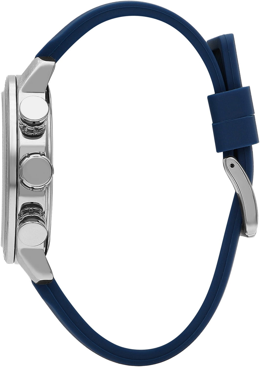 Lee Cooper LC07631.399 — элегантная модель с функциональными возможностями для повседневного использования. Корпус из суперметалла диаметром 49 мм придаёт часам классический и современный вид. Циферблат защищён минеральным стекломМинеральное стеклоМинеральное стекло представляет собой искусственно выращенный минерал кварца. Такое стекло отличается особой устойчивостью к повреждениям и царапинам. Уступает по некоторым качествам сапфировому стеклу., устойчивым к царапинам, хорошо может выдержать небольшие удары и падения. Стильный циферблат оформлен изысканными индексами и дополнен окошками даты, дня недели и 24-часового индикатора, а также аккуратными метками и стрелками с люминесцентным покрытиемЛюминесцентное покрытиеПозволяет считывать показания времени в темноте. Производители наносят на стрелки, часовые индексы, безель или поверхность циферблата светонакопительный состав, дающий холодное свечение., что гарантирует читаемость даже в условиях недостаточного освещения. Функция второго часового поясаВторой часовой поясФункция, позволяющая отображать время двух часовых поясов одновременно. делает часы удобными для путешественников. Часы работают на кварцевом механизме, обеспечивающем точность хода. Каучуковый ремешок на стандартной застёжке гарантирует удобную посадку и надёжную фиксацию на запястье. Водозащита 50 метров защищает часы от брызг и дождя, делая их подходящими для повседневного использования.