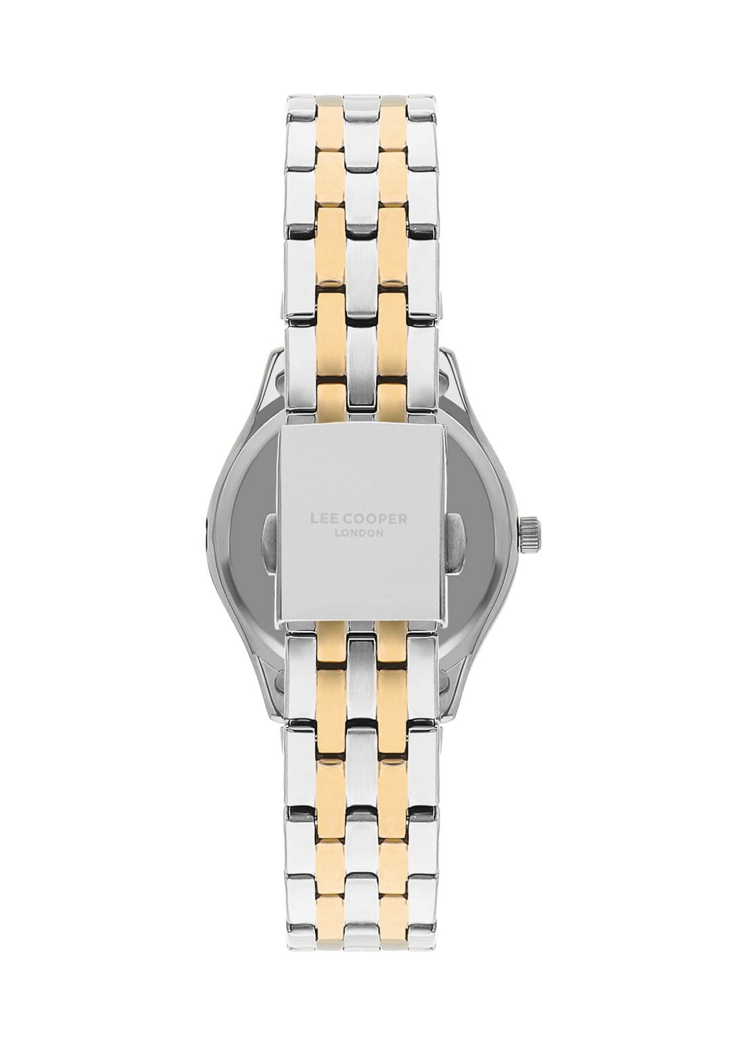 Женские часы Lee Cooper LC07832.220 выполнены в классическом стиле и сочетают строгий дизайн с надёжным механизмом. Модель оснащена кварцевым механизмом, обеспечивающим точность хода и минимальное обслуживание. Корпус круглой формы имеет размер 34 мм, изготовлен из суперметалла с изысканным неподвижным безелемБезельВнешний ободок, закрепляющий стекло. В спортивных часах так называется поворотное кольцо с делениями на циферблате, выполняет роль таймера – замеряет отрезки времени на шкале. Неподвижный безель – элемент декора. Однонаправленно вращающийся безель на дайверских часах позволяет фиксировать моменты погружения и выныривания на поверхность. с IP-покрытиемIP-покрытиеМетод ионного напыления. Демонстрирует повышенную устойчивость к истиранию, окислению и химическим веществам. Под воздействием высокого давления и температуры около 1500°C молекулы металла надёжно соединяются с частицами корпуса часов., гарантирует комфорт при ношении. Циферблат дополнен изящными вставками из циркона для чёткого отсчёта времени. Защиту циферблата обеспечивает минеральное стеклоМинеральное стеклоМинеральное стекло представляет собой искусственно выращенный минерал кварца. Такое стекло отличается особой устойчивостью к повреждениям и царапинам. Уступает по некоторым качествам сапфировому стеклу., устойчивое к мелким механическим повреждениям. Стрелки с люминесцентным покрытиемЛюминесцентное покрытиеПозволяет считывать показания времени в темноте. Производители наносят на стрелки, часовые индексы, безель или поверхность циферблата светонакопительный состав, дающий холодное свечение.. Стальной браслет с частичным IP-покрытиемIP-покрытиеМетод ионного напыления. Демонстрирует повышенную устойчивость к истиранию, окислению и химическим веществам. Под воздействием высокого давления и температуры около 1500°C молекулы металла надёжно соединяются с частицами корпуса часов. на раскладной застёжкеРаскладная застёжкаТакой тип застёжки используется только на браслетах из металла. Она никогда не раскрывается полностью, происходит разделение на 2 и более частей. Раскладывающая застёжка снизит вероятность потери часов к минимуму. гарантирует удобную посадку и надёжную фиксацию на запястье. Водозащита 30WR позволяет использовать часы в повседневных условиях без риска повреждения от случайных брызг воды. Это сочетание классического дизайна, прочности материалов и качества исполнения для уверенных в себе женщин.