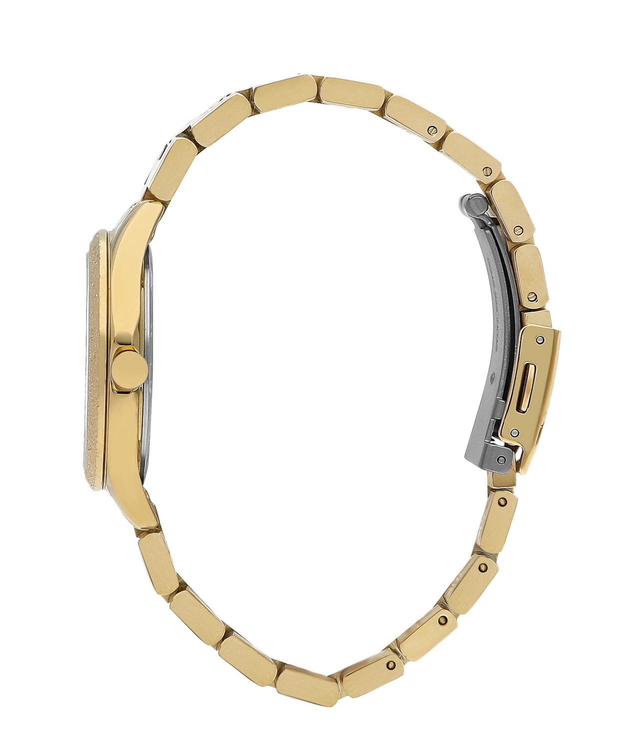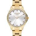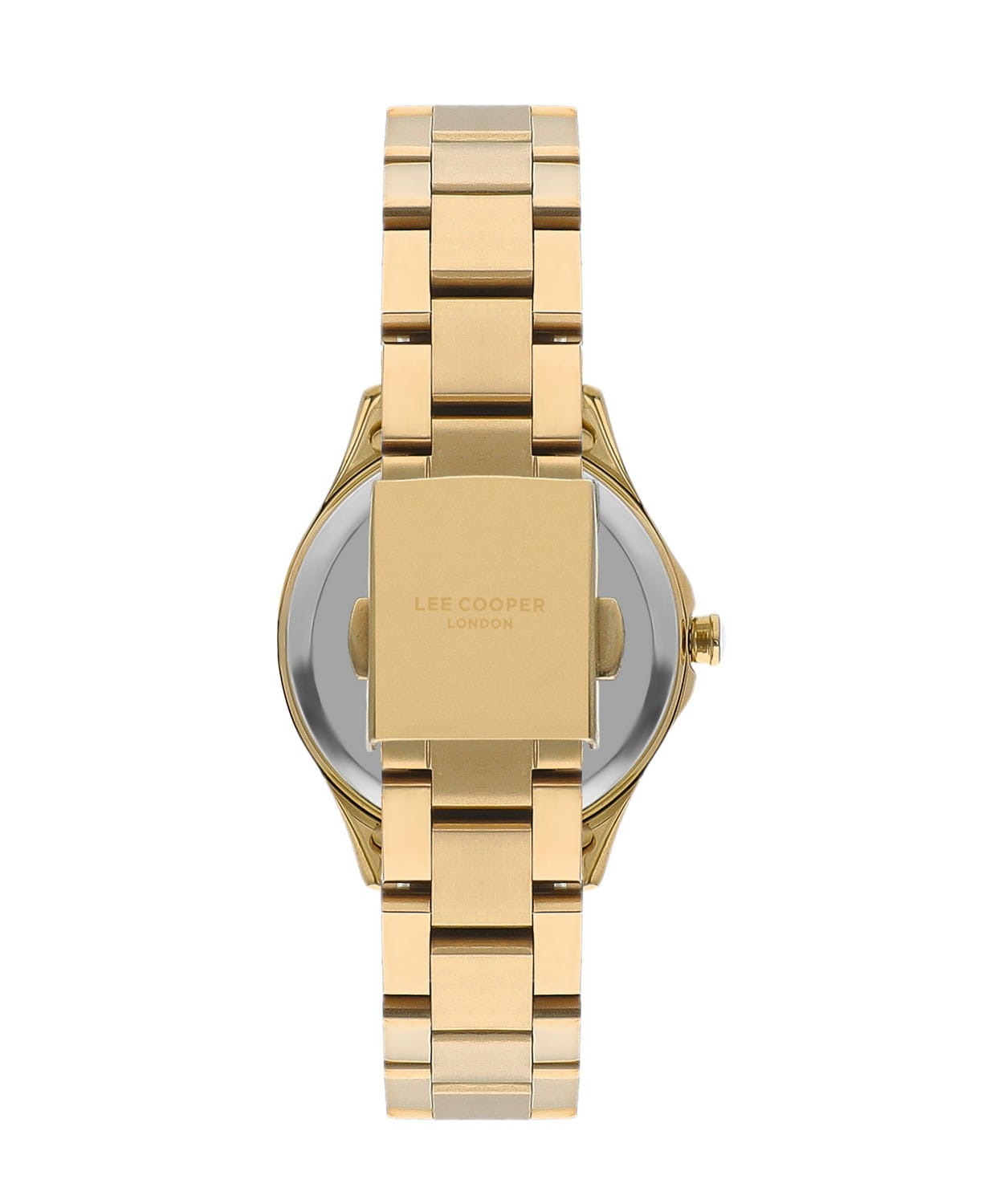Женские наручные часы Lee Cooper LC07840.130 — это элегантная модель с утончённым дизайном. Корпус диаметром 35 мм выполнен из суперметалла с IP-покрытиемIP-покрытиеМетод ионного напыления. Демонстрирует повышенную устойчивость к истиранию, окислению и химическим веществам. Под воздействием высокого давления и температуры около 1500°C молекулы металла надёжно соединяются с частицами корпуса часов., что придаёт часам изысканный вид. Серебристый циферблат украшен изящными вставками из циркония в виде меток времени и стрелками, обеспечивая удобное считывание времени. Циферблат защищён минеральным стекломМинеральное стеклоМинеральное стекло представляет собой искусственно выращенный минерал кварца. Такое стекло отличается особой устойчивостью к повреждениям и царапинам. Уступает по некоторым качествам сапфировому стеклу., устойчивым к царапинам. Часы работают на кварцевом механизме, обеспечивая точность хода. Часовая и минутная стрелки с люминесцентным покрытиемЛюминесцентное покрытиеПозволяет считывать показания времени в темноте. Производители наносят на стрелки, часовые индексы, безель или поверхность циферблата светонакопительный состав, дающий холодное свечение.. Браслет из нержавеющей стали с IP-покрытиемIP-покрытиеМетод ионного напыления. Демонстрирует повышенную устойчивость к истиранию, окислению и химическим веществам. Под воздействием высокого давления и температуры около 1500°C молекулы металла надёжно соединяются с частицами корпуса часов. с раскладной застёжкойРаскладная застёжкаТакой тип застёжки используется только на браслетах из металла. Она никогда не раскрывается полностью, происходит разделение на 2 и более частей. Раскладывающая застёжка снизит вероятность потери часов к минимуму. гарантирует комфортное ношение и надёжную фиксацию на запястье. Водозащита 30 метров защищает часы от случайных брызг и дождя, делая их подходящими для повседневного использования.
