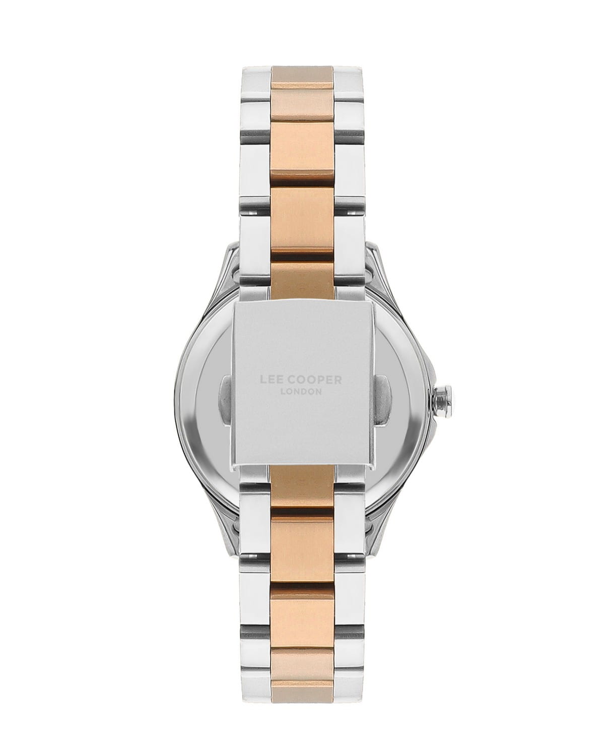 Женские наручные часы Lee Cooper LC07840.520 — это элегантная модель с утончённым дизайном. Корпус диаметром 35 мм выполнен из суперметалла с безелемБезельВнешний ободок, закрепляющий стекло. В спортивных часах так называется поворотное кольцо с делениями на циферблате, выполняет роль таймера – замеряет отрезки времени на шкале. Неподвижный безель – элемент декора. Однонаправленно вращающийся безель на дайверских часах позволяет фиксировать моменты погружения и выныривания на поверхность. с IP-покрытиемIP-покрытиеМетод ионного напыления. Демонстрирует повышенную устойчивость к истиранию, окислению и химическим веществам. Под воздействием высокого давления и температуры около 1500°C молекулы металла надёжно соединяются с частицами корпуса часов., что придаёт часам изысканный вид. Перламутровый циферблат украшен изящными вставками из циркония в виде меток времени и стрелками, обеспечивая удобное считывание времени. Циферблат защищён минеральным стекломМинеральное стеклоМинеральное стекло представляет собой искусственно выращенный минерал кварца. Такое стекло отличается особой устойчивостью к повреждениям и царапинам. Уступает по некоторым качествам сапфировому стеклу., устойчивым к царапинам. Часы работают на кварцевом механизме, обеспечивая точность хода. Часовая и минутная стрелки с люминесцентным покрытиемЛюминесцентное покрытиеПозволяет считывать показания времени в темноте. Производители наносят на стрелки, часовые индексы, безель или поверхность циферблата светонакопительный состав, дающий холодное свечение.. Браслет из нержавеющей стали с частичным IP-покрытиемIP-покрытиеМетод ионного напыления. Демонстрирует повышенную устойчивость к истиранию, окислению и химическим веществам. Под воздействием высокого давления и температуры около 1500°C молекулы металла надёжно соединяются с частицами корпуса часов. с раскладной застёжкойРаскладная застёжкаТакой тип застёжки используется только на браслетах из металла. Она никогда не раскрывается полностью, происходит разделение на 2 и более частей. Раскладывающая застёжка снизит вероятность потери часов к минимуму. гарантирует комфортное ношение и надёжную фиксацию на запястье. Водозащита 30 метров защищает часы от случайных брызг и дождя, делая их подходящими для повседневного использования.