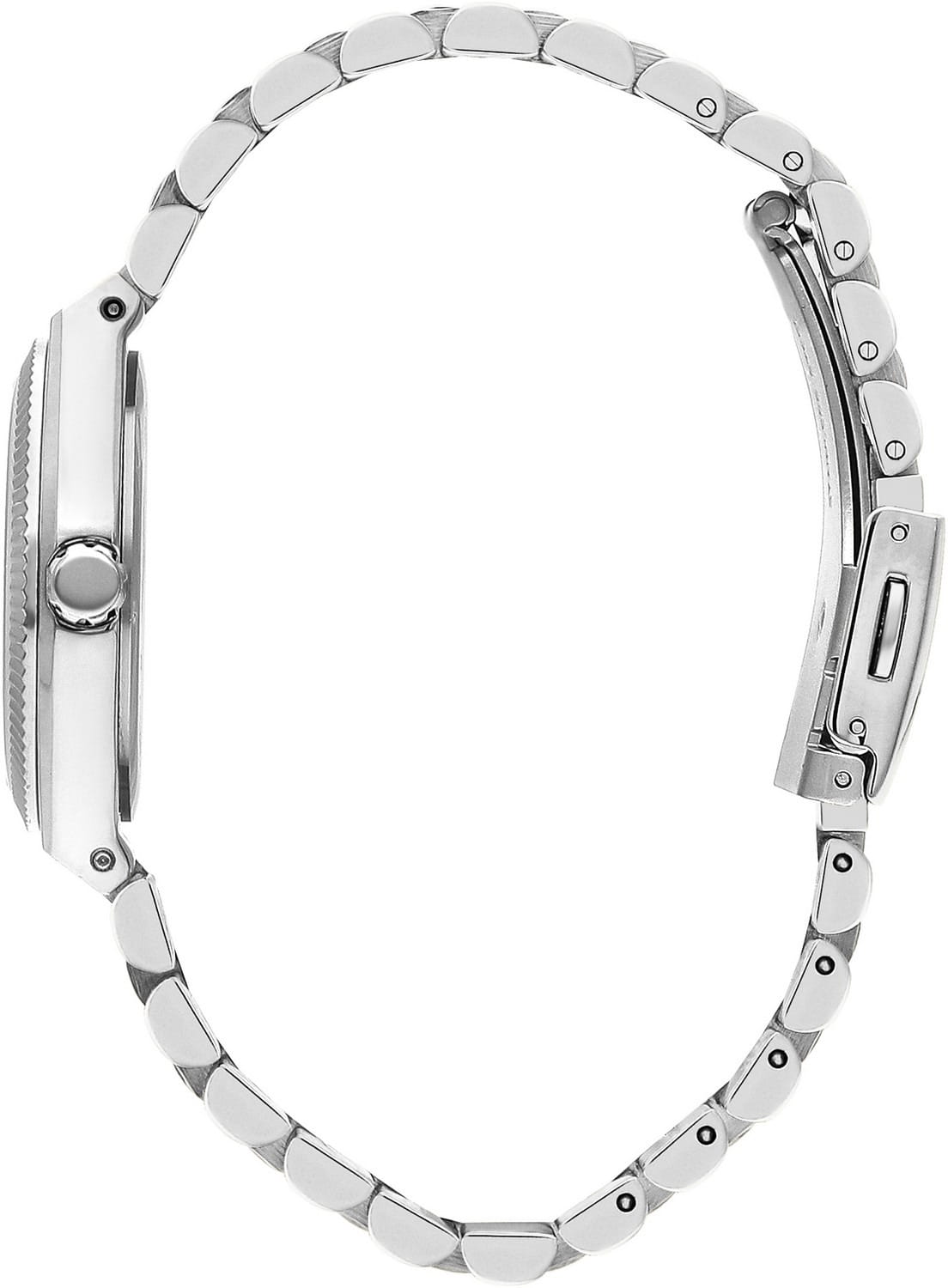 Женские часы Lee Cooper LC07970.320 с изящным корпусом 33 мм, выполненным из суперметалла, сочетают элегантность и надежность. Фиолетовый циферблат придаёт модели утончённый стиль, а минеральное стеклоМинеральное стеклоМинеральное стекло представляет собой искусственно выращенный минерал кварца. Такое стекло отличается особой устойчивостью к повреждениям и царапинам. Уступает по некоторым качествам сапфировому стеклу. защищает его от царапин и повреждений. Точный кварцевый механизм гарантирует стабильную работу и точность хода. Водозащита 30 м защищает от случайных брызг. Стальной браслет с раскладной застёжкойРаскладная застёжкаТакой тип застёжки используется только на браслетах из металла. Она никогда не раскрывается полностью, происходит разделение на 2 и более частей. Раскладывающая застёжка снизит вероятность потери часов к минимуму. обеспечивает комфортное ношение и надёжную фиксацию на запястье. Стрелки и метки покрыты люминесцентным покрытиемЛюминесцентное покрытиеПозволяет считывать показания времени в темноте. Производители наносят на стрелки, часовые индексы, безель или поверхность циферблата светонакопительный состав, дающий холодное свечение., обеспечивающим отличную читаемость в темноте.