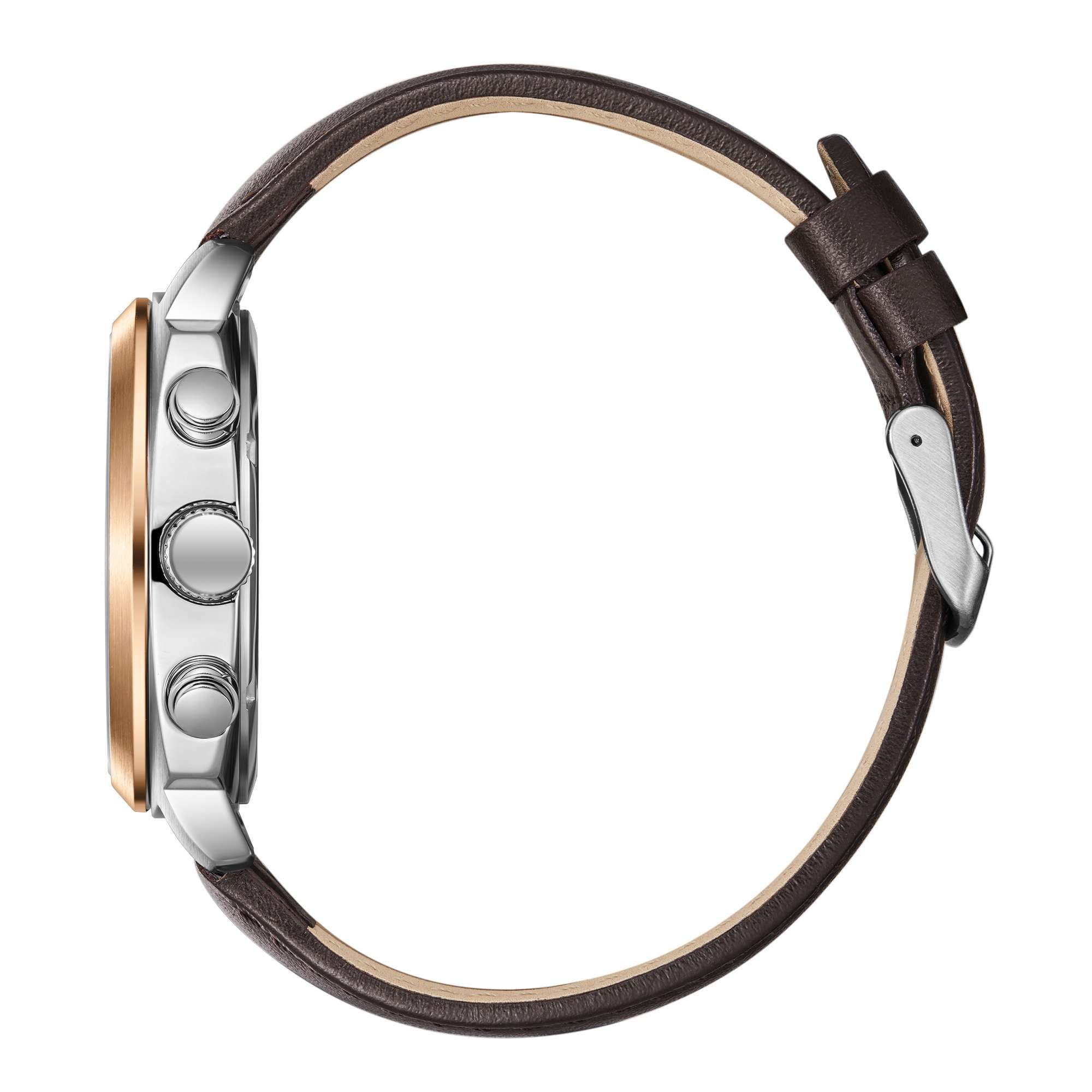 Мужские наручные часы Lee Cooper LC08172.592 оснащены кварцевым механизмом, обеспечивающий высокую точность хода и надежность. Элегантный корпус часов выполнен из суперметалла серебристого цвета, что делает их устойчивыми к внешним воздействиям и придает благородный вид. Циферблат украшен классическими стрелками и метками с люминесцентным покрытиемЛюминесцентное покрытиеПозволяет считывать показания времени в темноте. Производители наносят на стрелки, часовые индексы, безель или поверхность циферблата светонакопительный состав, дающий холодное свечение., гармонично дополняющим общий дизайн модели. Для защиты циферблата используется минеральное стеклоМинеральное стеклоМинеральное стекло представляет собой искусственно выращенный минерал кварца. Такое стекло отличается особой устойчивостью к повреждениям и царапинам. Уступает по некоторым качествам сапфировому стеклу., устойчивое к царапинам и механическим повреждениям. Неподвижный безельБезельВнешний ободок, закрепляющий стекло. В спортивных часах так называется поворотное кольцо с делениями на циферблате, выполняет роль таймера – замеряет отрезки времени на шкале. Неподвижный безель – элемент декора. Однонаправленно вращающийся безель на дайверских часах позволяет фиксировать моменты погружения и выныривания на поверхность. с IP-покрытиемIP-покрытиеМетод ионного напыления. Демонстрирует повышенную устойчивость к истиранию, окислению и химическим веществам. Под воздействием высокого давления и температуры около 1500°C молекулы металла надёжно соединяются с частицами корпуса часов. цвета розового золота. Корпус имеет круглую форму диаметром 42 мм, что делает часы заметными и подходящими. Кожаный ремешок на стандартной застёжке обеспечиваюет комфортное и безопасное ношение. Вынесенный циферблат с 24-х часовым указателем времени, индикацией даты и дня недели. Окошко даты находится в положении между 4 и 5 часов. Часы обладают водонепроницаемостью до 50 метров (5 АТМ), что позволяет использовать их в повседневной жизни, включая контакт с водой при мытье рук или дожде. Эти часы станут идеальным выбором для мужчин, ценящих стиль, качество и функциональность.