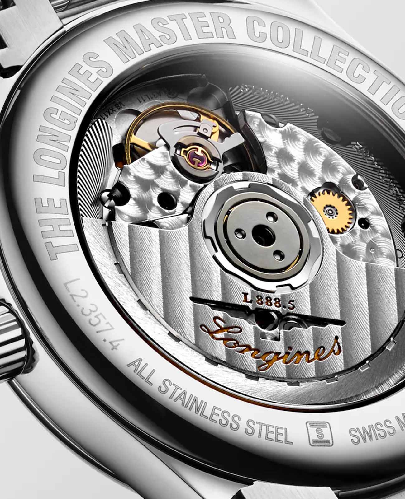 Женские швейцарские механические часы с автоподзаводом Longines Master Collection L2.357.4.99.6. Сапфировое стеклоСапфировое стеклоПрочный и надёжный материал из кристалла сапфира синтетического происхождения, характеризующийся особой твёрдостью и устойчивостью к царапинам и повреждениям. устойчивое к появлению царапин, обладающее высокой прозрачностью. Корпус часов изготовлен из нержавеющей стали. Циферблат с 12 бриллиантами группы Top Wesselton VS-SI общим весом 0.055 карата. Окошко даты в положении 3 часов. Прозрачная задняя крышка. Класс водозащиты: 30 метров, позволит защитить корпус от случайных брызг или капель дождя. Стальной браслет на застёжке «бабочка» с кнопкамиЗастёжка "бабочка"Такой вид застёжки дополняется предохранителями, помогающими избежать случайного раскрытия браслета. Обладают изящным исполнением. .