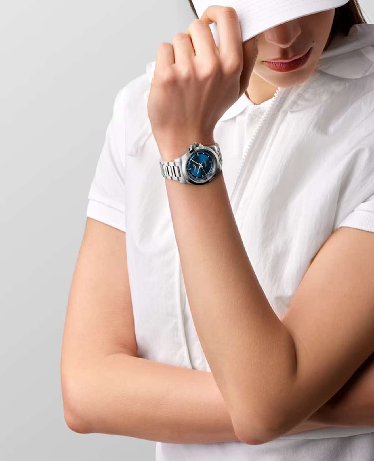 Женские швейцарские механические часы с автоподзаводом Longines Conquest L3.430.4.97.6. Сапфировое стеклоСапфировое стеклоПрочный и надёжный материал из кристалла сапфира синтетического происхождения, характеризующийся особой твёрдостью и устойчивостью к царапинам и повреждениям. устойчивое к появлению царапин, обладающее высокой прозрачностью. Корпус часов изготовлен из нержавеющей стали. Циферблат выполнен по технологии Sunray (солнечные лучи). Циферблат с 14 бриллиантами группы Top Wesselton VS-SI общим весом 0.035 карата. Стрелки с люминесцентным покрытиемЛюминесцентное покрытиеПозволяет считывать показания времени в темноте. Производители наносят на стрелки, часовые индексы, безель или поверхность циферблата светонакопительный состав, дающий холодное свечение.. Окошко даты в положении 6 часов. Прозрачная задняя крышка. Класс водозащиты: 100 метров, позволит плавать, нырять и заниматься другими водными видами спорта. Стальной браслет на раскладной застёжкеРаскладная застёжкаТакой тип застёжки используется только на браслетах из металла. Она никогда не раскрывается полностью, происходит разделение на 2 и более частей. Раскладывающая застёжка снизит вероятность потери часов к минимуму..
