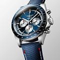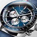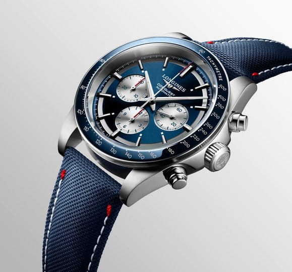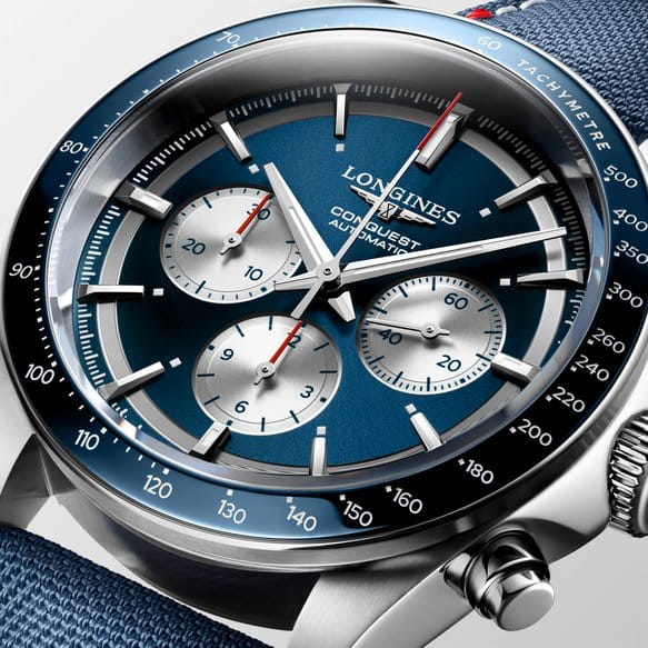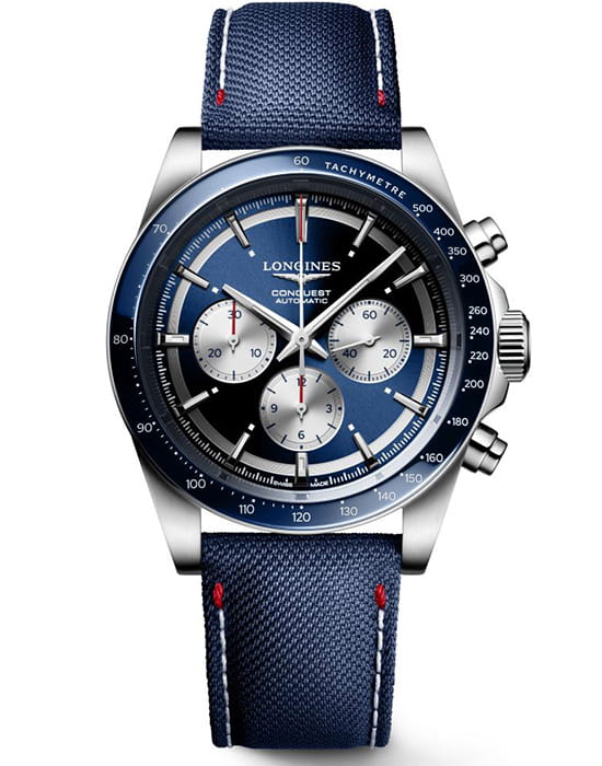Мужские швейцарские механические часы- хронографХронографФункция позволяет измерять отрезки времени с особой точностью: часы, минуты, секунды. Верным признаком хронографа является наличие на циферблате 3 дополнительных окошек-счётчиков. Longines Conquest L3.835.4.91.2. Сапфировое стеклоСапфировое стеклоПрочный и надёжный материал из кристалла сапфира синтетического происхождения, характеризующийся особой твёрдостью и устойчивостью к царапинам и повреждениям. с многослойным антибликовым покрытием с обеих сторон, устойчивое к появлению царапин, обладающее высокой прозрачностью. Корпус часов изготовлен из стали. Неподвижный безельБезельВнешний ободок, закрепляющий стекло. В спортивных часах так называется поворотное кольцо с делениями на циферблате, выполняет роль таймера – замеряет отрезки времени на шкале. Неподвижный безель – элемент декора. Однонаправленно вращающийся безель на дайверских часах позволяет фиксировать моменты погружения и выныривания на поверхность. из стали и керамики, защищенный от царапин, никогда не изнашивается и не выцветает. Шкала тахиметраТахиметрРазмеченная шкала, располагается на ободке или безеле часов. Тахиметр позволяет рассчитать скорость на определённом участке пути, расстояние измеряется в километрах или милях.. На циферблате расположены три дополнительных циферблата. Стрелки и метки с люминесцентным покрытиемЛюминесцентное покрытиеПозволяет считывать показания времени в темноте. Производители наносят на стрелки, часовые индексы, безель или поверхность циферблата светонакопительный состав, дающий холодное свечение.. Класс водозащиты: 100 метров, позволит плавать, нырять и заниматься другими водными видами спорта. Тканевый ремешок на раскладной застёжкеРаскладная застёжкаТакой тип застёжки используется только на браслетах из металла. Она никогда не раскрывается полностью, происходит разделение на 2 и более частей. Раскладывающая застёжка снизит вероятность потери часов к минимуму.. Лимитированная серия.