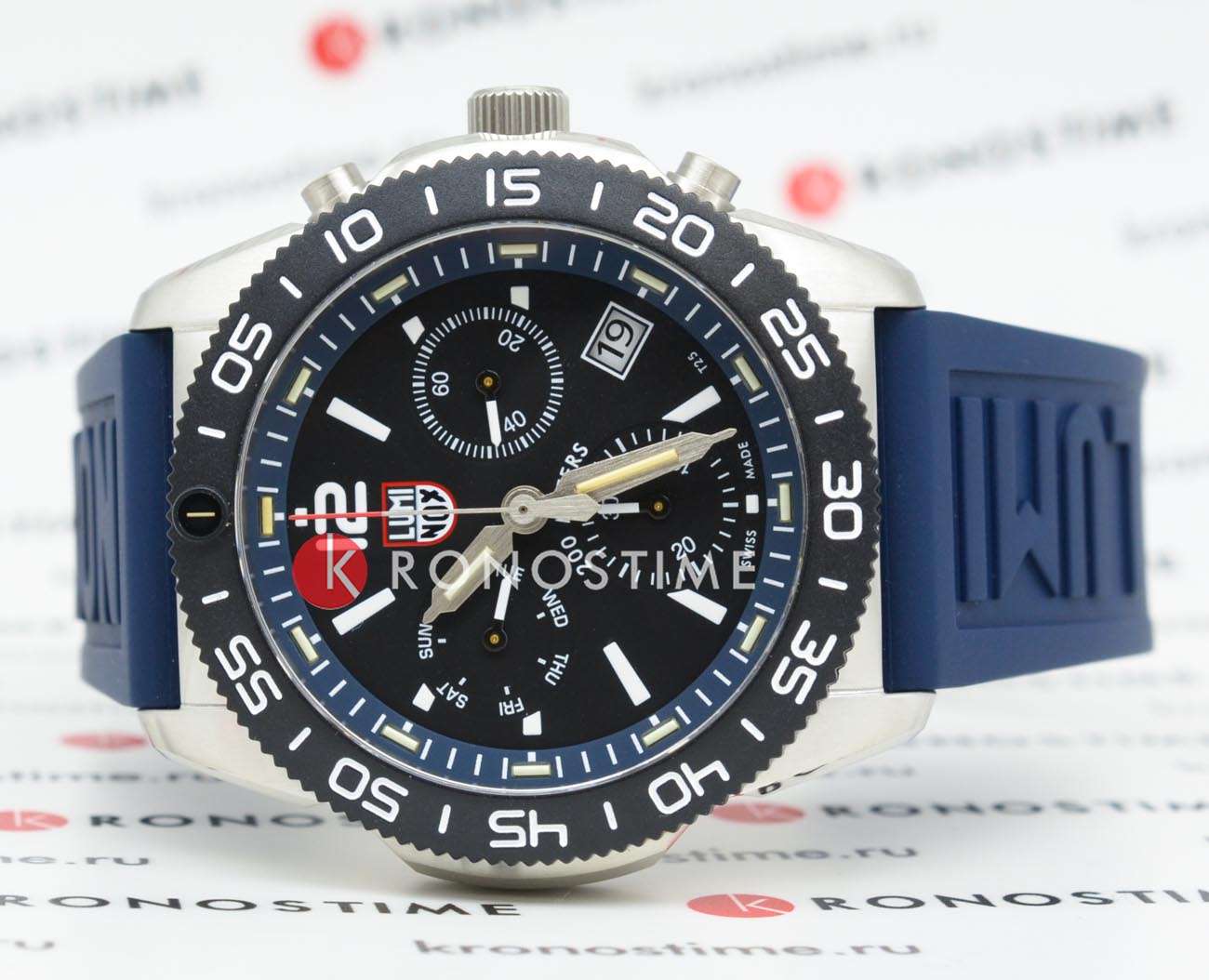 Мужские наручные часы-хронографХронографФункция позволяет измерять отрезки времени с особой точностью: часы, минуты, секунды. Верным признаком хронографа является наличие на циферблате 3 дополнительных окошек-счётчиков. Luminox XS.3143.SET из коллекции Pacific Diver сочетают в себе спортивный дизайн и надежность швейцарского качества . Модель обладает круглым корпусом диаметром 44 мм, изготовленным из нержавеющей стали, что обеспечивает высокую устойчивость к внешним воздействиям и долговечность . Циферблат черного цвета украшен контрастными метками и стрелками с люминесцентным покрытиемЛюминесцентное покрытиеПозволяет считывать показания времени в темноте. Производители наносят на стрелки, часовые индексы, безель или поверхность циферблата светонакопительный состав, дающий холодное свечение., гарантирующим постоянную видимость времени даже в условиях низкой освещенности благодаря системе LLTLLTLLT — это автономный механизм подсветки, основанный на использовании микроскопических газонаполненных элементов. Специальные герметичные капсулы из боросиликатного стекла, интегрированные в циферблат, генерируют свечение без необходимости подключения к внешним источникам энергии. Для их работы не требуется ни дополнительный свет, ни механическое воздействие (например, нажатие кнопки). Свечение возникает благодаря химическому процессу: реакция между тритием, заключенным в капсулах, и люминофорным покрытием создает стабильное автономное освещение. Технология обеспечивает энергетическую независимость и долговечность подсветки. (микрогазовые огни) . Часы оснащены кварцевым механизмом швейцарского производства Ronda 515, обеспечивающим точность хода ±15 секунд в месяц . Защиту циферблата обеспечивает прочное сапфировое стеклоСапфировое стеклоПрочный и надёжный материал из кристалла сапфира синтетического происхождения, характеризующийся особой твёрдостью и устойчивостью к царапинам и повреждениям. с антибликовым покрытиемАнтибликовое покрытиеСлой оксида металла в 0,13-0,3 микрон, благодаря которому стекло часов не бликует и не отражает свет. Антибликовое покрытие уменьшает отражение света в 10 раз, обеспечивая отличную читаемость показателей циферблата., устойчивое к царапинам и механическим повреждениям . Водонепроницаемость модели достигает 20 атмосфер (200 метров), что делает их подходящими для плавания и активного отдыха на воде, включая дайвинг . Модель также оснащена безелемБезельВнешний ободок, закрепляющий стекло. В спортивных часах так называется поворотное кольцо с делениями на циферблате, выполняет роль таймера – замеряет отрезки времени на шкале. Неподвижный безель – элемент декора. Однонаправленно вращающийся безель на дайверских часах позволяет фиксировать моменты погружения и выныривания на поверхность. с односторонним вращением, что добавляет функциональности при использовании в водных условиях . Ремешок выполнен из каучука, что обеспечивает комфортное ношение в течение дня и удобство в уходе . Дополнительно часы имеют окно даты в положении «3 часа», что делает их практичными для повседневного использования . Сочетание современных технологий, надежности и стильного дизайна делает Luminox XS.3143.SET идеальным выбором для ценителей качественных аксессуаров. В комплекте идет дополнительный черный каучуковый р