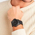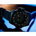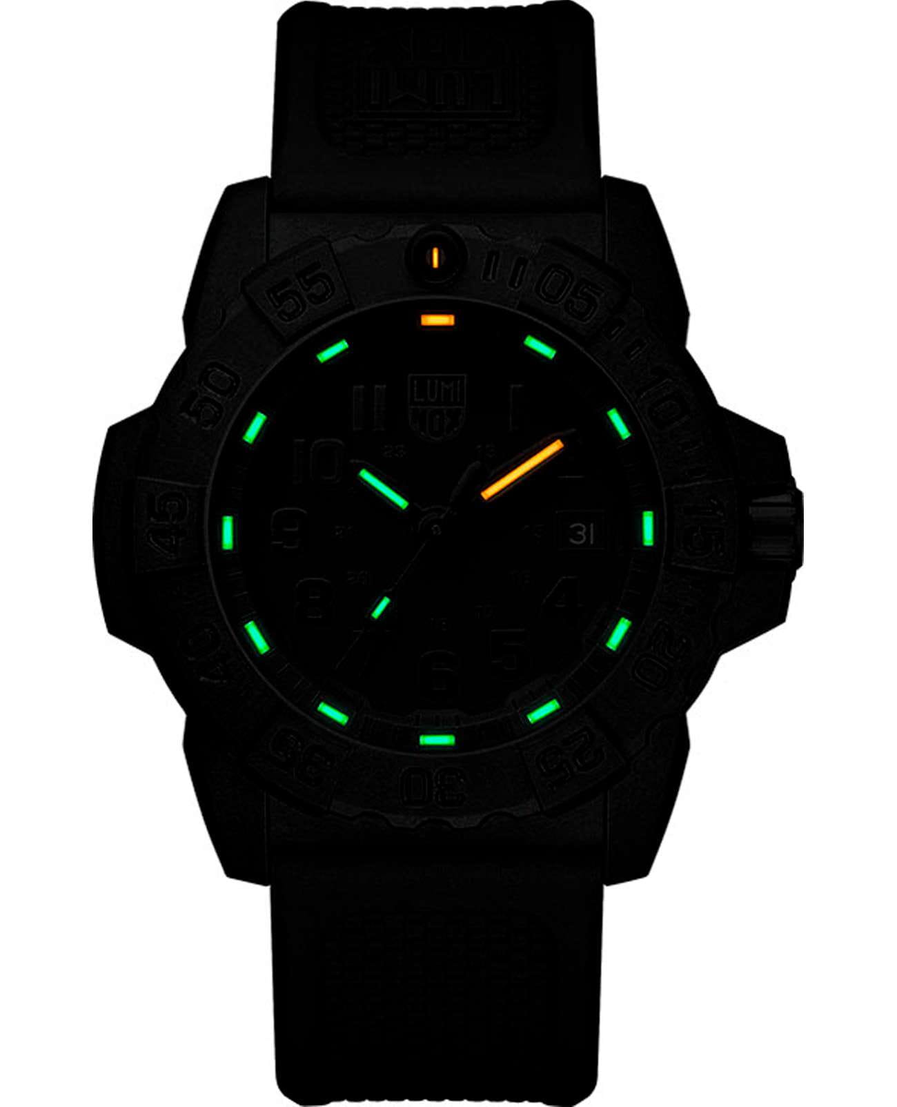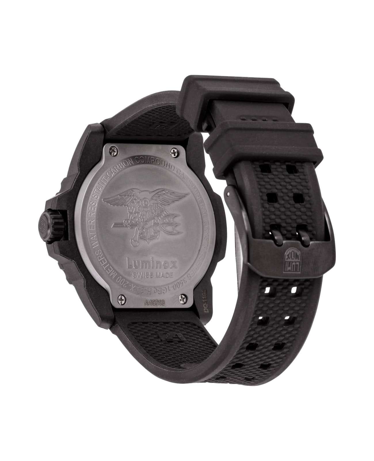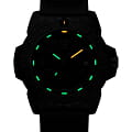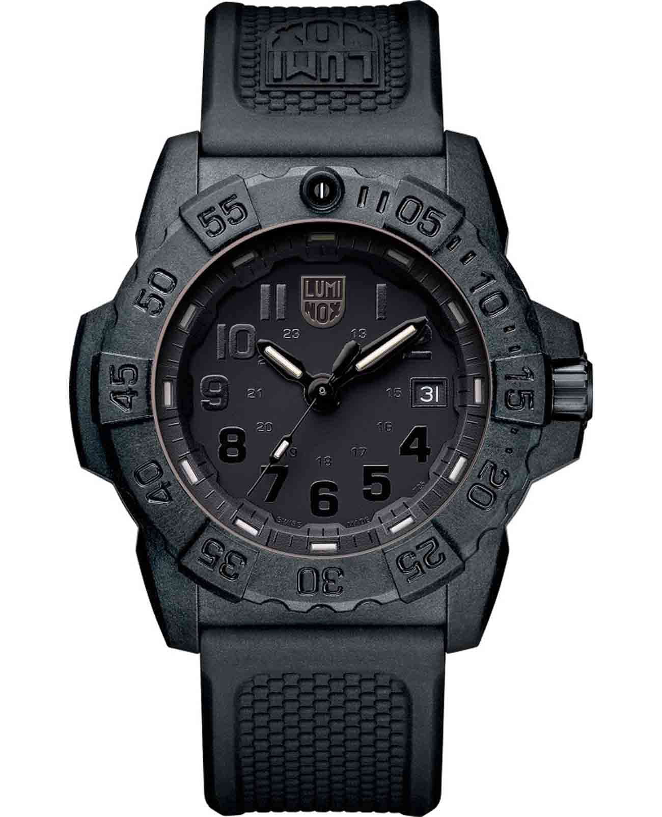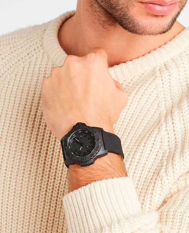 Мужские наручные часы Luminox XS.3501.BO.F из коллекции Navy SEAL сочетают в себе спортивный дизайн и надежность швейцарского качества . Модель обладает круглым корпусом диаметром 43 мм, изготовленным из карбонаКарбонОт «carbon», «carbone» - углерод, углепластик - полимерный композиционный материал из переплетённых под определенным углом между собой нитей углеродного волокна, применяется для изготовления лёгких, но прочных деталей. В часах часто используют для украшения циферблатов и ремешков. Так же карбон используется в изготовлении корпусов. Такие корпуса обладают антикоррозионным свойством, не поддаются электромагнитному излучению, обладают повышенной прочностью и противоударностью. (CARBONOX™), что обеспечивает высокую устойчивость к внешним воздействиям при сохранении легкости . Циферблат черного цвета украшен контрастными метками и стрелками с люминесцентным покрытиемЛюминесцентное покрытиеПозволяет считывать показания времени в темноте. Производители наносят на стрелки, часовые индексы, безель или поверхность циферблата светонакопительный состав, дающий холодное свечение., гарантирующим постоянную видимость времени даже в условиях низкой освещенности благодаря системе LLTLLTLLT — это автономный механизм подсветки, основанный на использовании микроскопических газонаполненных элементов. Специальные герметичные капсулы из боросиликатного стекла, интегрированные в циферблат, генерируют свечение без необходимости подключения к внешним источникам энергии. Для их работы не требуется ни дополнительный свет, ни механическое воздействие (например, нажатие кнопки). Свечение возникает благодаря химическому процессу: реакция между тритием, заключенным в капсулах, и люминофорным покрытием создает стабильное автономное освещение. Технология обеспечивает энергетическую независимость и долговечность подсветки. (микрогазовые огни) . Часы оснащены кварцевым механизмом швейцарского производства Ronda 715, обеспечивающим точность хода ±15 секунд в месяц . Защиту циферблата обеспечивает прочное минеральное стеклоМинеральное стеклоМинеральное стекло представляет собой искусственно выращенный минерал кварца. Такое стекло отличается особой устойчивостью к повреждениям и царапинам. Уступает по некоторым качествам сапфировому стеклу. с антибликовым покрытиемАнтибликовое покрытиеСлой оксида металла в 0,13-0,3 микрон, благодаря которому стекло часов не бликует и не отражает свет. Антибликовое покрытие уменьшает отражение света в 10 раз, обеспечивая отличную читаемость показателей циферблата., устойчивое к царапинам и механическим повреждениям . Водонепроницаемость модели достигает 20 атмосфер (200 метров), что делает их подходящими для плавания и активного отдыха на воде, включая дайвинг . Модель также оснащена безелемБезельВнешний ободок, закрепляющий стекло. В спортивных часах так называется поворотное кольцо с делениями на циферблате, выполняет роль таймера – замеряет отрезки времени на шкале. Неподвижный безель – элемент декора. Однонаправленно вращающийся безель на дайверских часах позволяет фиксировать моменты погружения и выныривания на поверхность. с односторонним вращением, что добавляет функциональности при использовании в водных условиях . Ремешок выполнен из черного полиуретана, что обеспечивает комфортное ношение 