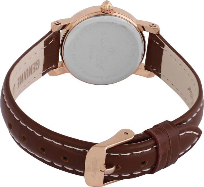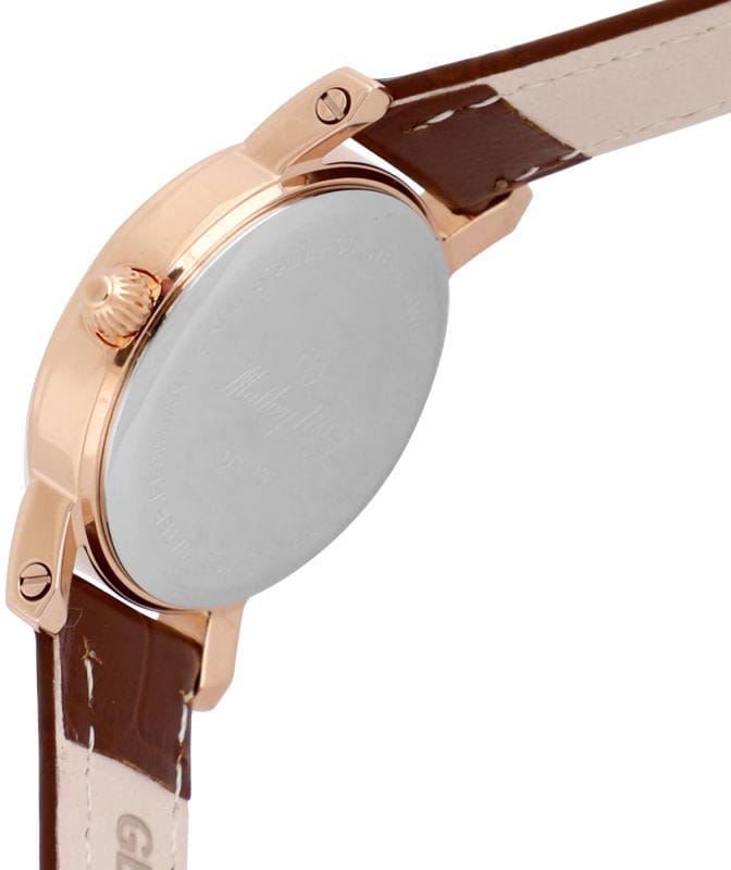 Женские кварцевые часы Mathey-Tissot City Leather D31186PBR— это стильное сочетание элегантности и современного дизайна. Изящный корпус выполнен из нержавеющей стали 316L с PVD-покрытиемPVDУльтратонкое покрытие наносится в технике вакуумного напыления, сочетает в себе нитрид титана особой прочности со слоем золота или оксида хрома. Несёт в себе декоративную или защитную функцию., что придаст образу женственности и романтизма. Изысканный циферблат с метками в виде римских цифр придает модели особый блеск. Циферблат защищен минеральным стекломМинеральное стеклоМинеральное стекло представляет собой искусственно выращенный минерал кварца. Такое стекло отличается особой устойчивостью к повреждениям и царапинам. Уступает по некоторым качествам сапфировому стеклу. с сапфировым покрытием, обеспечивающий устойчивость к царапинам. Окошко даты находится в положении 3 часа. Часы оснащены надежным кварцевым механизмом. Кожаный ремень на стандартной застежке, гарантирует комфортное и безопасное ношение. Класс водозащиты: 50 метров позволит защитить корпус от случайных брызг или капель дождя. Mathey-Tissot  — отличный выбор для тех, кто ценит утонченность и качество.