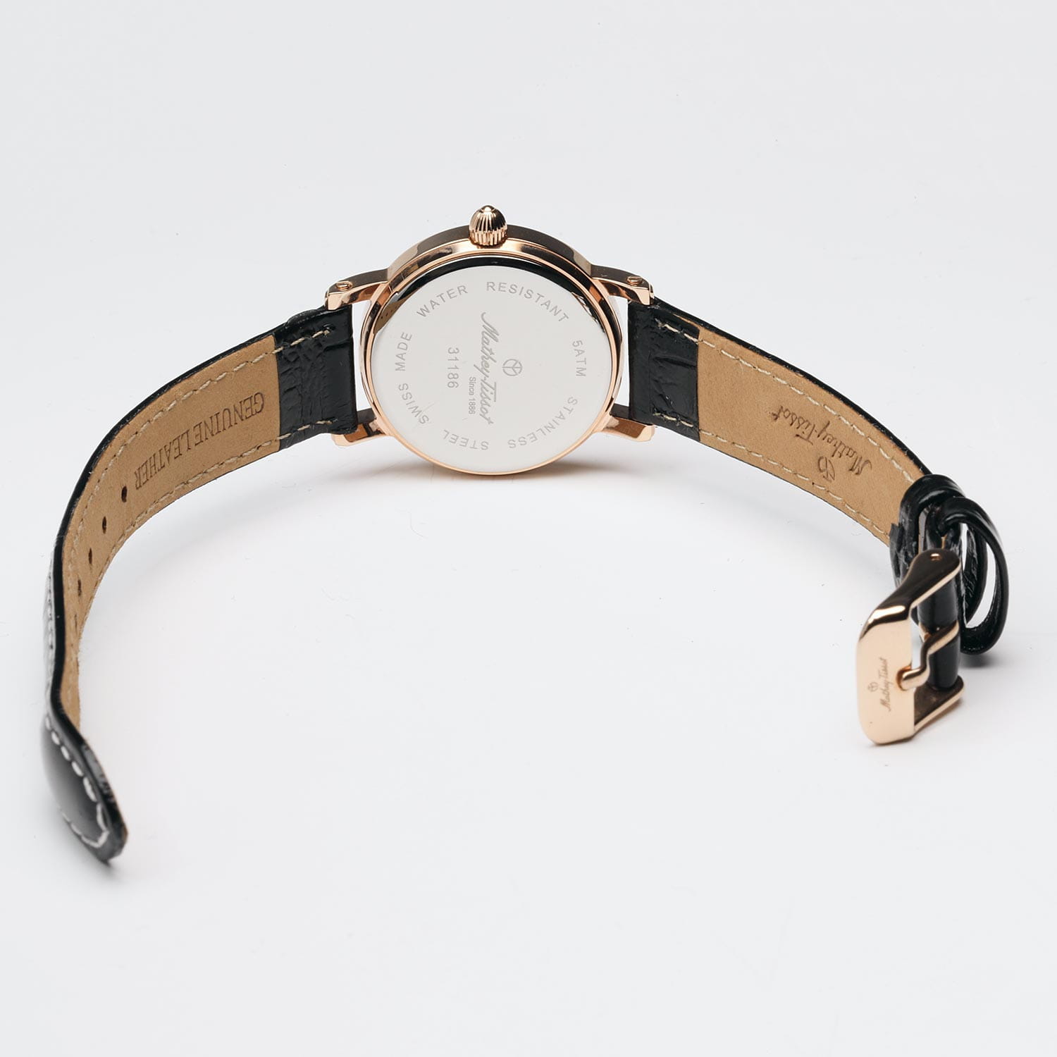 Женские кварцевые часы Mathey-Tissot City Leather D31186PN — это стильное сочетание элегантности и современного дизайна. Изящный корпус выполнен из нержавеющей стали 316L с розовым PVD-покрытиемPVDУльтратонкое покрытие наносится в технике вакуумного напыления, сочетает в себе нитрид титана особой прочности со слоем золота или оксида хрома. Несёт в себе декоративную или защитную функцию., что придаст образу женственности и романтизма. Изысканный циферблат с метками в виде штрихов придает модели особый блеск. Циферблат защищен минеральным стекломМинеральное стеклоМинеральное стекло представляет собой искусственно выращенный минерал кварца. Такое стекло отличается особой устойчивостью к повреждениям и царапинам. Уступает по некоторым качествам сапфировому стеклу. с сапфировым покрытием, обеспечивающий устойчивость к царапинам. Окошко даты находится в положении 3 часа. Часы оснащены надежным кварцевым механизмом. Кожаный ремень на стандартной застежке, гарантирует комфортное и безопасное ношение. Класс водозащиты: 50 метров позволит защитить корпус от случайных брызг или капель дождя. Mathey-Tissot  — отличный выбор для тех, кто ценит утонченность и качество.