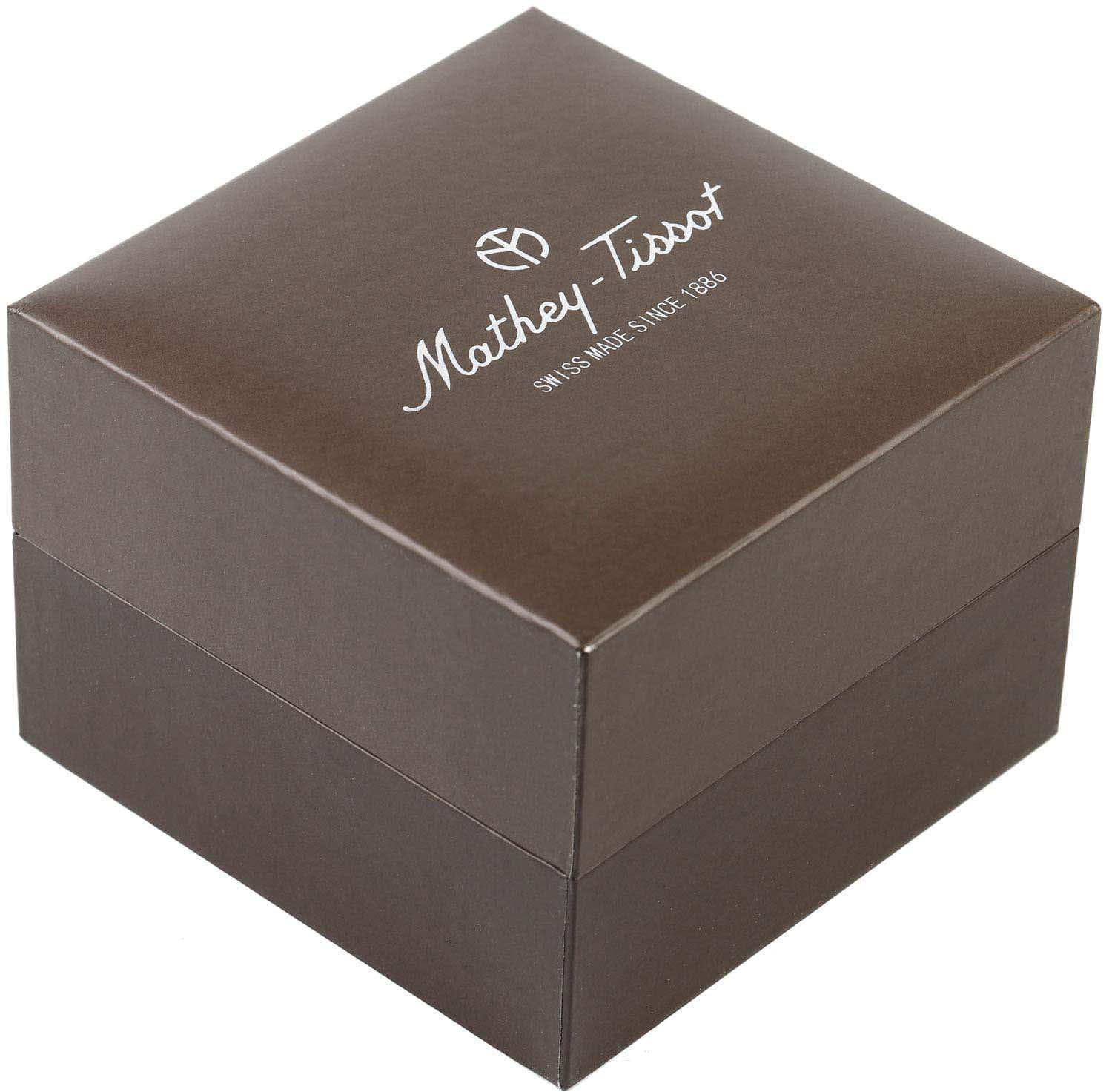 Мужские кварцевые часы-хронографХронографФункция позволяет измерять отрезки времени с особой точностью: часы, минуты, секунды. Верным признаком хронографа является наличие на циферблате 3 дополнительных окошек-счётчиков. Mathey-Tissot Urban H411CHALS — это стильное сочетание элегантности и современного дизайна. Изящный корпус выполнен из нержавеющей стали, диаметром 42 мм, что придаст образу элегантности и надежности. Изысканный циферблат с метками в виде штрихов придает модели особый блеск. Циферблат защищен минеральным стекломМинеральное стеклоМинеральное стекло представляет собой искусственно выращенный минерал кварца. Такое стекло отличается особой устойчивостью к повреждениям и царапинам. Уступает по некоторым качествам сапфировому стеклу. с сапфировым покрытием, обеспечивает устойчивость к царапинам. Стрелки с люминесцентным покрытиемЛюминесцентное покрытиеПозволяет считывать показания времени в темноте. Производители наносят на стрелки, часовые индексы, безель или поверхность циферблата светонакопительный состав, дающий холодное свечение.. Окошко даты находится в положении 4 часа. Часы оснащены надежным кварцевым механизмом. Кожаный ремешок на стандартной застёжке гарантирует комфортное и безопасное ношение. Класс водозащиты: 50 метров позволит защитить корпус от случайных брызг или капель дождя. Mathey-Tissot — отличный выбор для тех, кто ценит утонченность и качество.