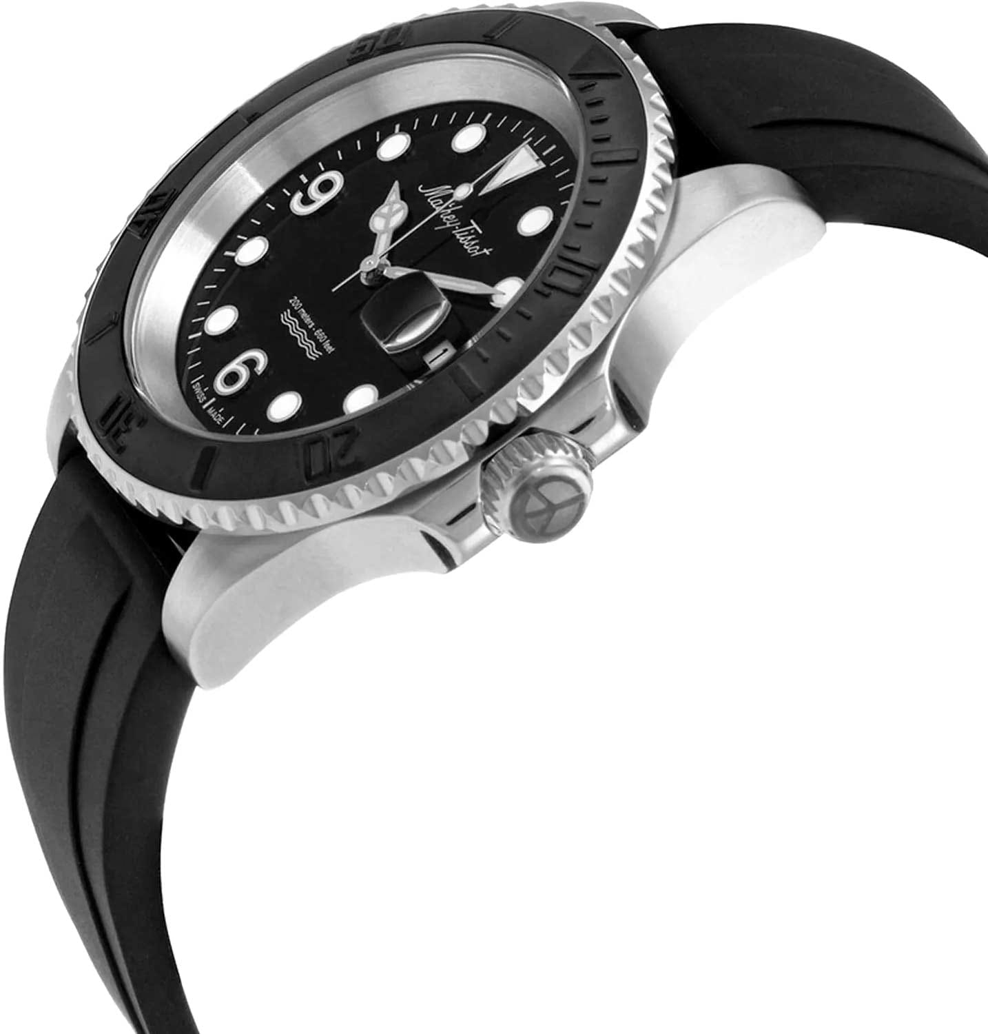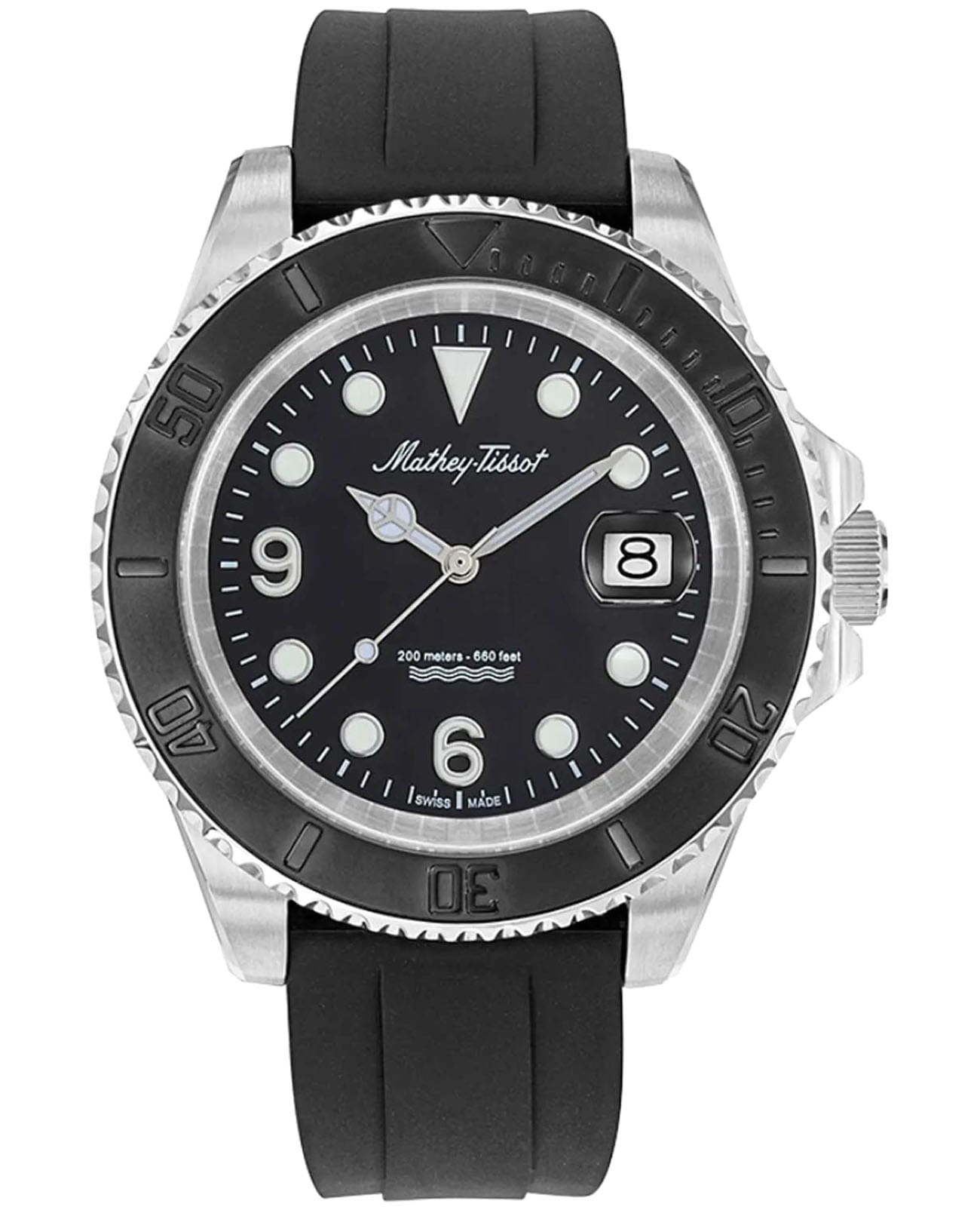 Мужские кварцевые часы Mathey-Tissot Mathy H909AN — это стильное сочетание элегантности и современного дизайна. Изящный корпус выполнен из нержавеющей стали, диаметром 42 мм, что придаст образу элегантности и надежности. Циферблат с метками в виде точек и арабских цифр придает модели особый блеск. Циферблат защищен минеральным стекломМинеральное стеклоМинеральное стекло представляет собой искусственно выращенный минерал кварца. Такое стекло отличается особой устойчивостью к повреждениям и царапинам. Уступает по некоторым качествам сапфировому стеклу. с сапфировым покрытием, обеспечивает устойчивость к царапинам. Стрелки и метки с люминесцентным покрытиемЛюминесцентное покрытиеПозволяет считывать показания времени в темноте. Производители наносят на стрелки, часовые индексы, безель или поверхность циферблата светонакопительный состав, дающий холодное свечение.. Окошко даты находится в положении 3 часа. Вращающийся безельБезельВнешний ободок, закрепляющий стекло. В спортивных часах так называется поворотное кольцо с делениями на циферблате, выполняет роль таймера – замеряет отрезки времени на шкале. Неподвижный безель – элемент декора. Однонаправленно вращающийся безель на дайверских часах позволяет фиксировать моменты погружения и выныривания на поверхность. в одном направлении. Часы оснащены надежным кварцевым механизмом. Силиконовый ремешок с раскладной застёжкойРаскладная застёжкаТакой тип застёжки используется только на браслетах из металла. Она никогда не раскрывается полностью, происходит разделение на 2 и более частей. Раскладывающая застёжка снизит вероятность потери часов к минимуму. гарантирует комфортное и безопасное ношение. Класс водозащиты: 200 метров позволит плавать, нырять и заниматься другими водными видами спорта. Mathey-Tissot — отличный выбор для тех, кто ценит утонченность и качество.