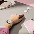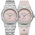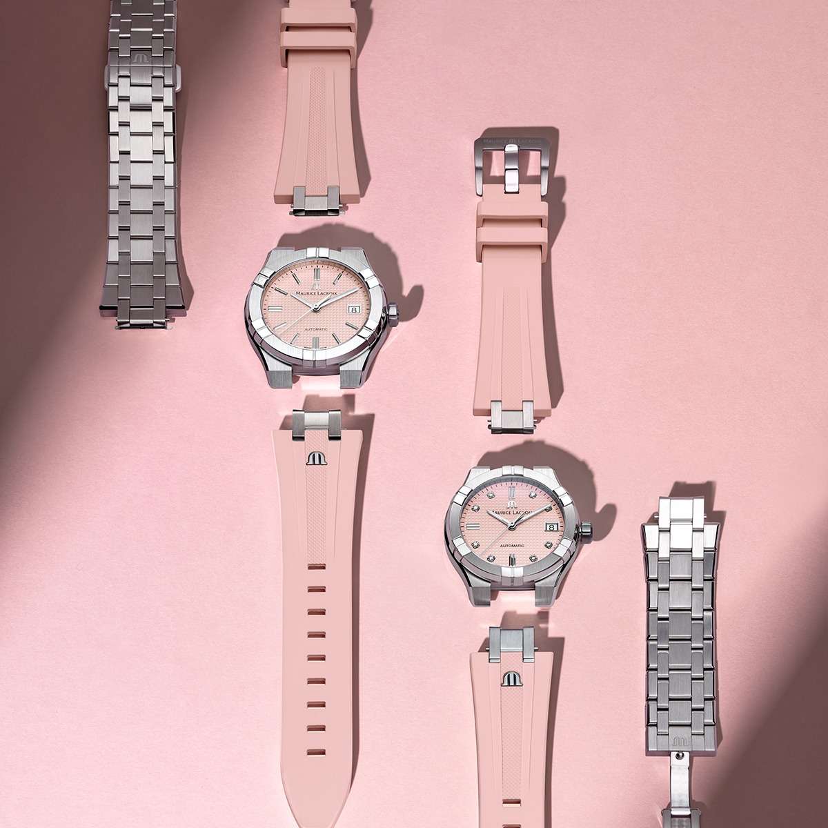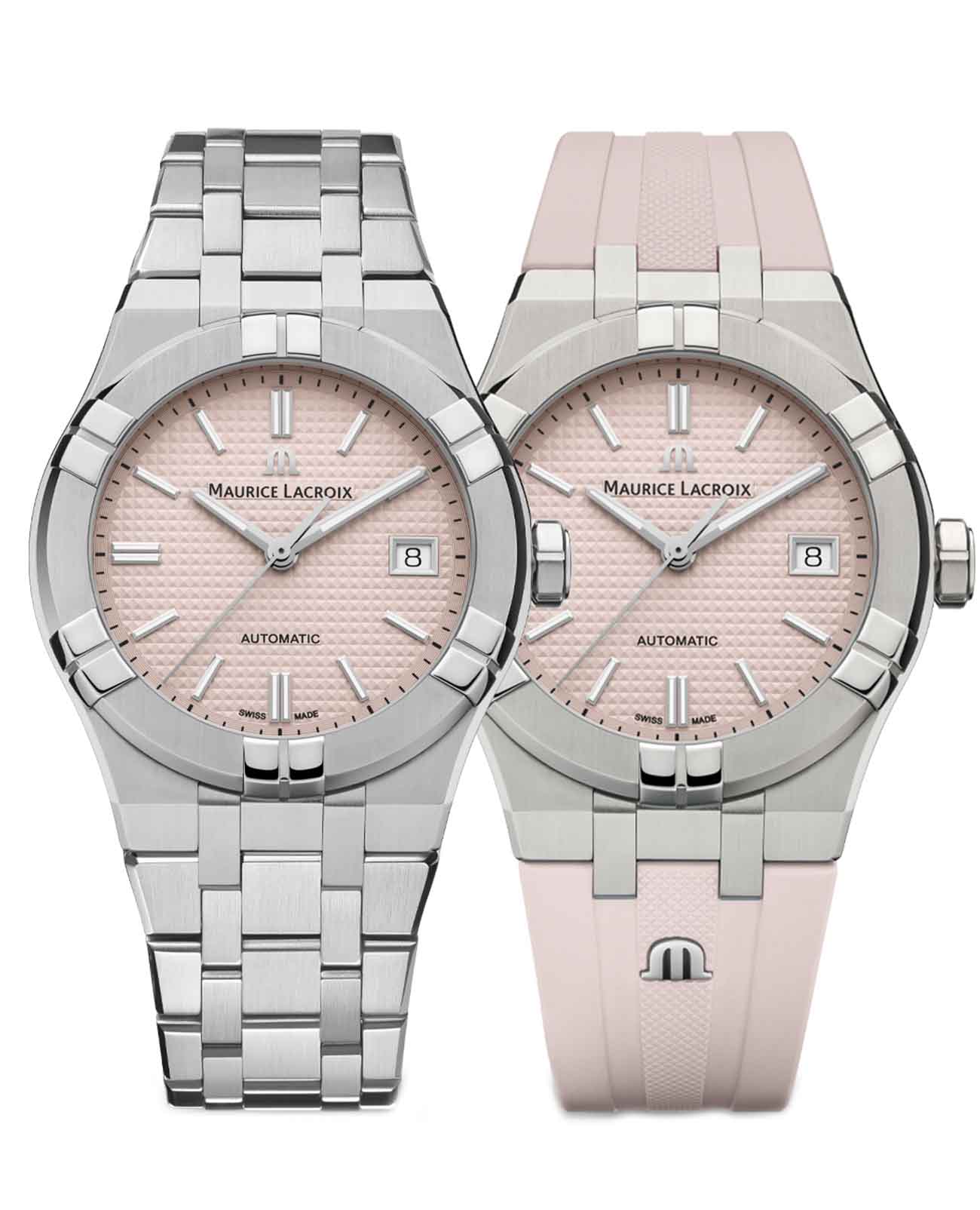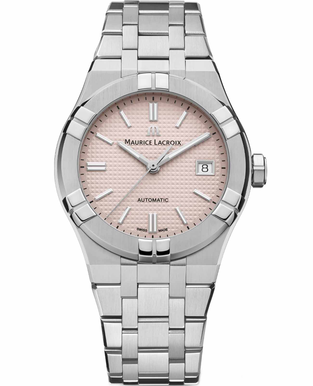 Швейцарские часы Maurice Lacroix Aikon Automatic AI6007-SS00F-530-E, воплощающие современный стиль и безупречное швейцарское качество. Корпус из нержавеющей стали диаметром 39 мм и высотой 11 мм совмещает матовую и полированную отделку, придавая часам изысканный вид. Сапфировое стеклоСапфировое стеклоПрочный и надёжный материал из кристалла сапфира синтетического происхождения, характеризующийся особой твёрдостью и устойчивостью к царапинам и повреждениям. с двойным антибликовым покрытиемАнтибликовое покрытиеСлой оксида металла в 0,13-0,3 микрон, благодаря которому стекло часов не бликует и не отражает свет. Антибликовое покрытие уменьшает отражение света в 10 раз, обеспечивая отличную читаемость показателей циферблата. надежно защищает гильошированный нежно-розовый циферблат с узором Clous de Paris. Часы снабжены задней крышкой с сапфировым стеклом, позволяющим увидеть изысканно декорированный автоматический механизм ML115, обладающий запасом хода в 38 часов. БезельБезельВнешний ободок, закрепляющий стекло. В спортивных часах так называется поворотное кольцо с делениями на циферблате, выполняет роль таймера – замеряет отрезки времени на шкале. Неподвижный безель – элемент декора. Однонаправленно вращающийся безель на дайверских часах позволяет фиксировать моменты погружения и выныривания на поверхность. с узнаваемым дизайном из шести "когтей" и завинчивающаяся заводная головка подчеркивают уверенный характер модели. Часы водонепроницаемы до 20 ATM, что делает их отличным выбором для активного образа жизни. Стрелки с люминесцентным покрытиемЛюминесцентное покрытиеПозволяет считывать показания времени в темноте. Производители наносят на стрелки, часовые индексы, безель или поверхность циферблата светонакопительный состав, дающий холодное свечение., что облегчает чтение времени даже в условиях слабого освещения. На 3 часах расположено окошко с датой, добавляющее функциональности. Часы комплектуются браслетом из нержавеющей стали, и застежка «бабочка»Застёжка "бабочка"Такой вид застёжки дополняется предохранителями, помогающими избежать случайного раскрытия браслета. Обладают изящным исполнением. , раскладывающаяся при нажатии кнопок двойной блокировки и гравировкой Maurice Lacroix завершают образ, обеспечивая удобство и стиль. Особенность этой модели - дополнительный резиновый ремешок нежно-розового цвета со стандартной застежкой.