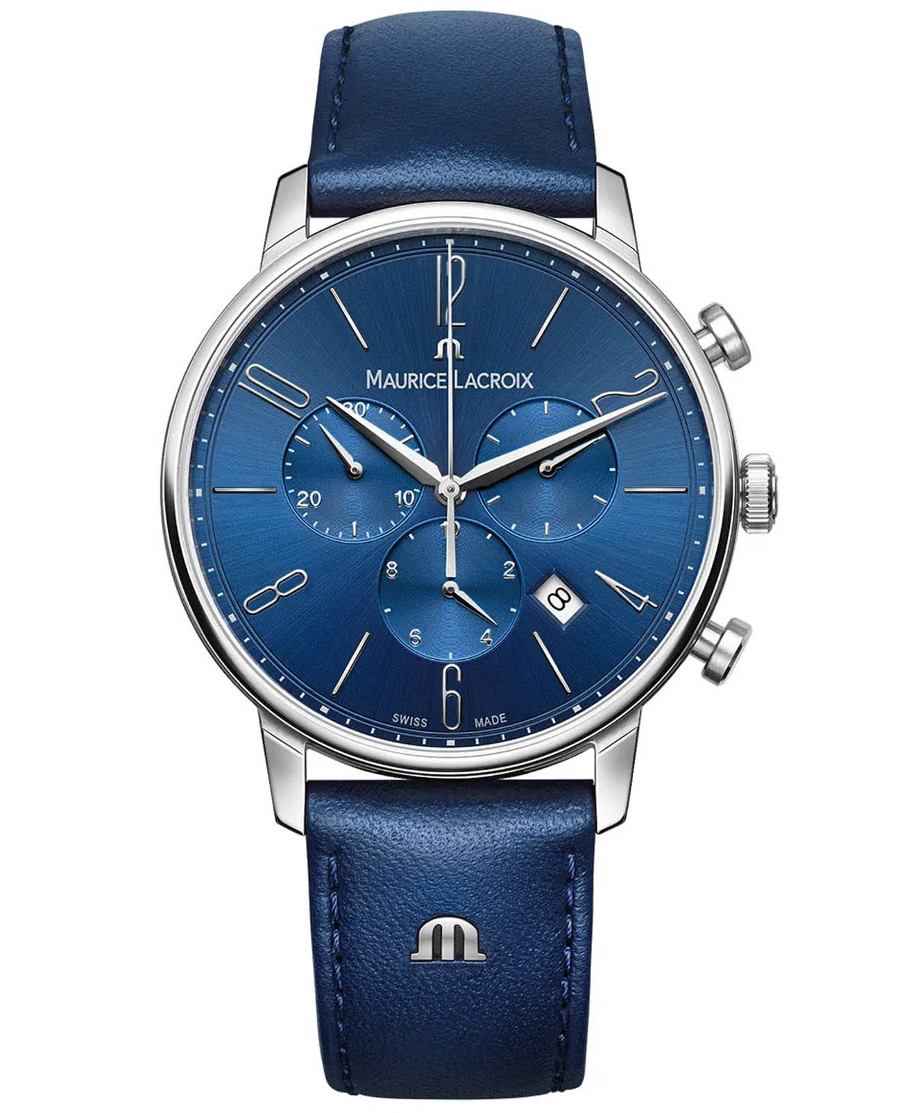 Женские швейцарские часы-хронографХронографФункция позволяет измерять отрезки времени с особой точностью: часы, минуты, секунды. Верным признаком хронографа является наличие на циферблате 3 дополнительных окошек-счётчиков. Maurice Lacroix Eliros Chronograph EL1098-SS001-420-4, кварцевый механизм с высокой точностью. Сапфировое стеклоСапфировое стеклоПрочный и надёжный материал из кристалла сапфира синтетического происхождения, характеризующийся особой твёрдостью и устойчивостью к царапинам и повреждениям. устойчивое к появлению царапин, обладающее высокой прозрачностью. Корпус часов изготовлен из нержавеющей стали. На циферблате расположены три дополнительных индикатора и окошко даты. Класс водозащиты: 50 метров, позволит защитить корпус от случайных брызг или капель дождя. Кожаный ремешок на стандартной застежке.