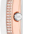 Женские американские наручные часы с минеральным стекломМинеральное стеклоМинеральное стекло представляет собой искусственно выращенный минерал кварца. Такое стекло отличается особой устойчивостью к повреждениям и царапинам. Уступает по некоторым качествам сапфировому стеклу. Michael Kors Emery MK4744, кварцевый механизм с высокой точностью. Минеральное стеклоМинеральное стеклоМинеральное стекло представляет собой искусственно выращенный минерал кварца. Такое стекло отличается особой устойчивостью к повреждениям и царапинам. Уступает по некоторым качествам сапфировому стеклу. устойчивое к появлению царапин, обладающее высокой прозрачностью. Корпус и браслет часов изготовлены из нержавеющей стали с частичным PVD-покрытиемPVDУльтратонкое покрытие наносится в технике вакуумного напыления, сочетает в себе нитрид титана особой прочности со слоем золота или оксида хрома. Несёт в себе декоративную или защитную функцию.. БезельБезельВнешний ободок, закрепляющий стекло. В спортивных часах так называется поворотное кольцо с делениями на циферблате, выполняет роль таймера – замеряет отрезки времени на шкале. Неподвижный безель – элемент декора. Однонаправленно вращающийся безель на дайверских часах позволяет фиксировать моменты погружения и выныривания на поверхность. из нержавеющей стали украшен кристаллами. Класс водозащиты: 50 метров, позволит защитить корпус от случайных брызг или капель дождя. Стальной браслет на раскладной застёжкеРаскладная застёжкаТакой тип застёжки используется только на браслетах из металла. Она никогда не раскрывается полностью, происходит разделение на 2 и более частей. Раскладывающая застёжка снизит вероятность потери часов к минимуму..
