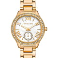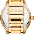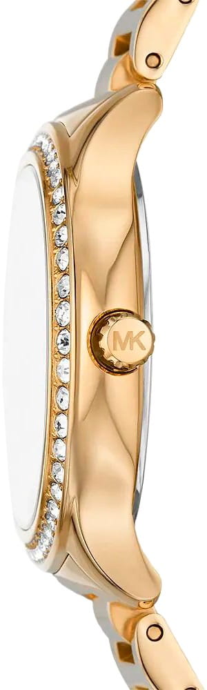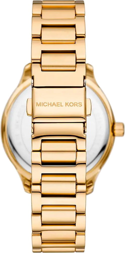 Эти часы — идеальный аксессуар, который придаст женскому образу завершенность и особый шарм. Женские американские часы Michael Kors Sage MK4805 имеют кварцевый механизм с высокой точностью. Корпус и браслет часов изготовлены из нержавеющей стали с золотистым PVD-покрытиемPVDУльтратонкое покрытие наносится в технике вакуумного напыления, сочетает в себе нитрид титана особой прочности со слоем золота или оксида хрома. Несёт в себе декоративную или защитную функцию.. Перламутровый циферблат и безельБезельВнешний ободок, закрепляющий стекло. В спортивных часах так называется поворотное кольцо с делениями на циферблате, выполняет роль таймера – замеряет отрезки времени на шкале. Неподвижный безель – элемент декора. Однонаправленно вращающийся безель на дайверских часах позволяет фиксировать моменты погружения и выныривания на поверхность. украшены кристаллами. Циферблат с метками в виде римских цифр и штрихов защищен минеральным стекломМинеральное стеклоМинеральное стекло представляет собой искусственно выращенный минерал кварца. Такое стекло отличается особой устойчивостью к повреждениям и царапинам. Уступает по некоторым качествам сапфировому стеклу., что обеспечивает надежную защиту от царапин и повреждений. Секундная стрелка вынесена на отдельный циферблат, обрамленный кристаллами, что придает часам уникальный и стильный вид. Люминесцентное покрытиеЛюминесцентное покрытиеПозволяет считывать показания времени в темноте. Производители наносят на стрелки, часовые индексы, безель или поверхность циферблата светонакопительный состав, дающий холодное свечение. на стрелках обеспечивает отличную видимость в темноте. Класс водозащиты: 50 метров, позволит защитить корпус от случайных брызг или капель дождя. Стальной браслет с золотистым PVD-покрытиемPVDУльтратонкое покрытие наносится в технике вакуумного напыления, сочетает в себе нитрид титана особой прочности со слоем золота или оксида хрома. Несёт в себе декоративную или защитную функцию. на раскладной застёжкеРаскладная застёжкаТакой тип застёжки используется только на браслетах из металла. Она никогда не раскрывается полностью, происходит разделение на 2 и более частей. Раскладывающая застёжка снизит вероятность потери часов к минимуму. обеспечивает надежную фиксацию на запястье и легкость в надевании и снятии. Эти часы станут отличным дополнением к любому наряду, подчеркивая индивидуальность и стиль их обладательницы.