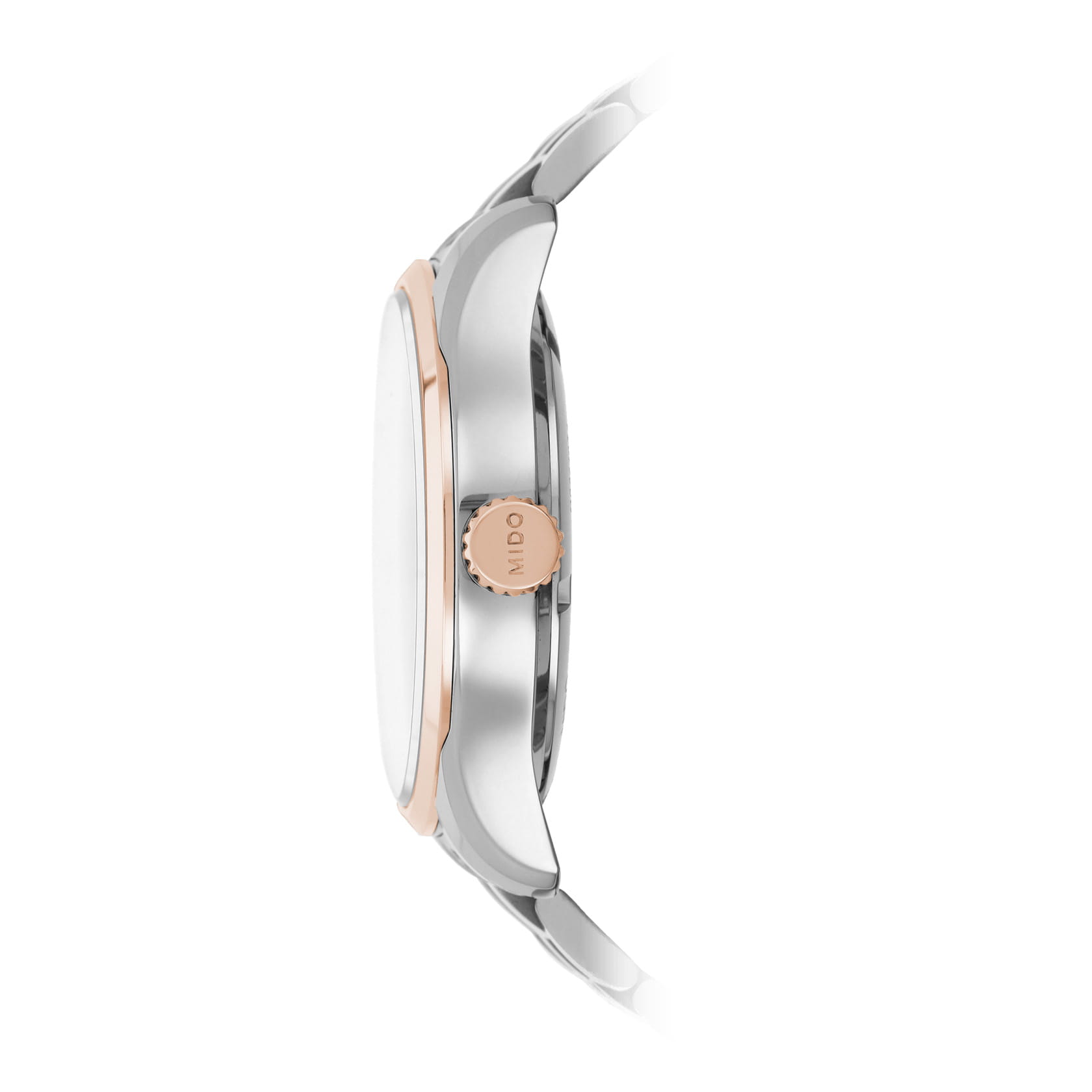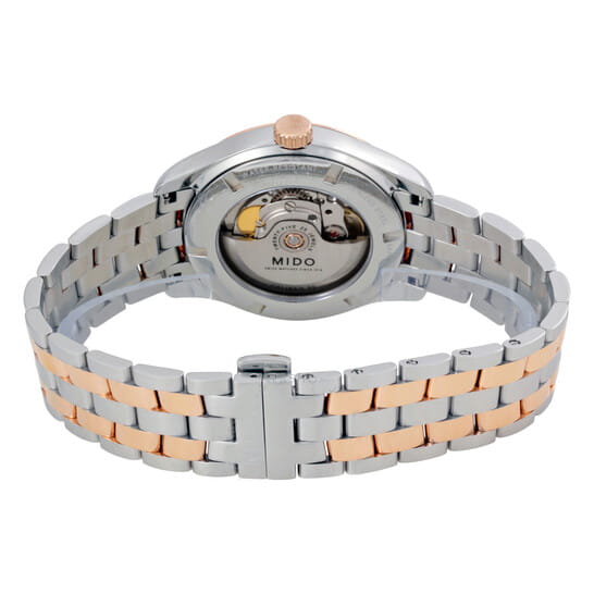 Мужские швейцарские механические часы с сапфировым стекломСапфировое стеклоПрочный и надёжный материал из кристалла сапфира синтетического происхождения, характеризующийся особой твёрдостью и устойчивостью к царапинам и повреждениям. Mido Belluna M024.427.11.031.00, оснащенные механизмом Caliber 80 часы Belluna со стрелками и часовыми метками с PVD-покрытиемPVDУльтратонкое покрытие наносится в технике вакуумного напыления, сочетает в себе нитрид титана особой прочности со слоем золота или оксида хрома. Несёт в себе декоративную или защитную функцию. цвета розового золота, прямоугольными индексами. Посредством исключительно сложной технологии, на компоненты часов наносится PVDPVDУльтратонкое покрытие наносится в технике вакуумного напыления, сочетает в себе нитрид титана особой прочности со слоем золота или оксида хрома. Несёт в себе декоративную или защитную функцию. покрытие, которое обеспечивает длительную защиту металла от коррозии.