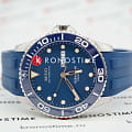 Ремешок из синего каучука с раскладывающейся застёжкойРаскладная застёжкаТакой тип застёжки используется только на браслетах из металла. Она никогда не раскрывается полностью, происходит разделение на 2 и более частей. Раскладывающая застёжка снизит вероятность потери часов к минимуму. и удлинением для дайвинга обеспечивает комфортное и надёжное ношение.