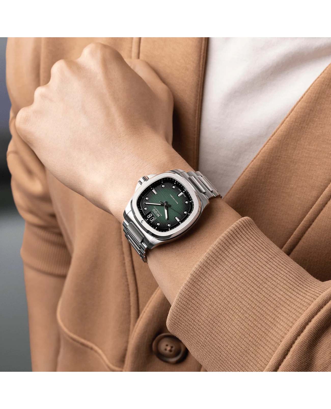 Мужские механические швейцарские часы Mido Multifort TV Big Date M049.526.11.091.00, механический механизм (автоматический калибр) с высокой точностью. Сапфировое стеклоСапфировое стеклоПрочный и надёжный материал из кристалла сапфира синтетического происхождения, характеризующийся особой твёрдостью и устойчивостью к царапинам и повреждениям. устойчивое к появлению царапин, обладающее высокой прозрачностью. Корпус часов изготовлен из нержавеющей стали в форме телевизора, столь же впечатляющий, сколь и точный, благодаря своему мощному механическому механизму. Современный и динамичный дизайн этих швейцарских часов подчеркивается ярким горизонтальным циферблатом с матовой отделкой, а также их отличительной функцией: большой датой в положении 12 часов. Стрелки с люминесцентным покрытиемЛюминесцентное покрытиеПозволяет считывать показания времени в темноте. Производители наносят на стрелки, часовые индексы, безель или поверхность циферблата светонакопительный состав, дающий холодное свечение.. Мощный автоматический механизм последнего поколения Calibre 80 оснащен высокотехнологичной балансировочной пружиной Nivachron ™ , которая обеспечивает исключительную устойчивость к ударам и магнитным полям. Класс водозащиты: 100 метров, позволит плавать, нырять и заниматься другими водными видами спорта. Стальной браслет на раскладной застёжкеРаскладная застёжкаТакой тип застёжки используется только на браслетах из металла. Она никогда не раскрывается полностью, происходит разделение на 2 и более частей. Раскладывающая застёжка снизит вероятность потери часов к минимуму..